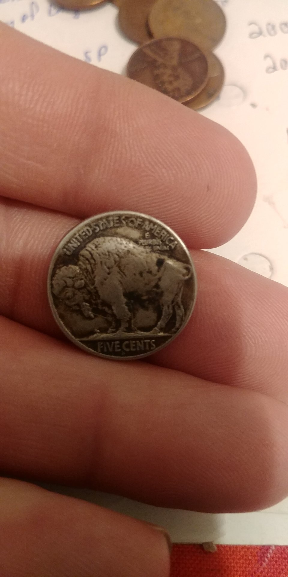 Yes its damage.i agree.tks for your thought.i have 2 other buffalo nickels.date worn off on one and nice 1936 all four legs.ilegs.ill add this 1.00 to retirement fund.lol have great day.