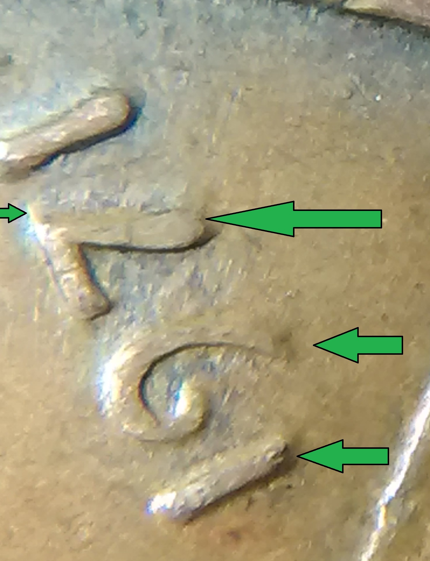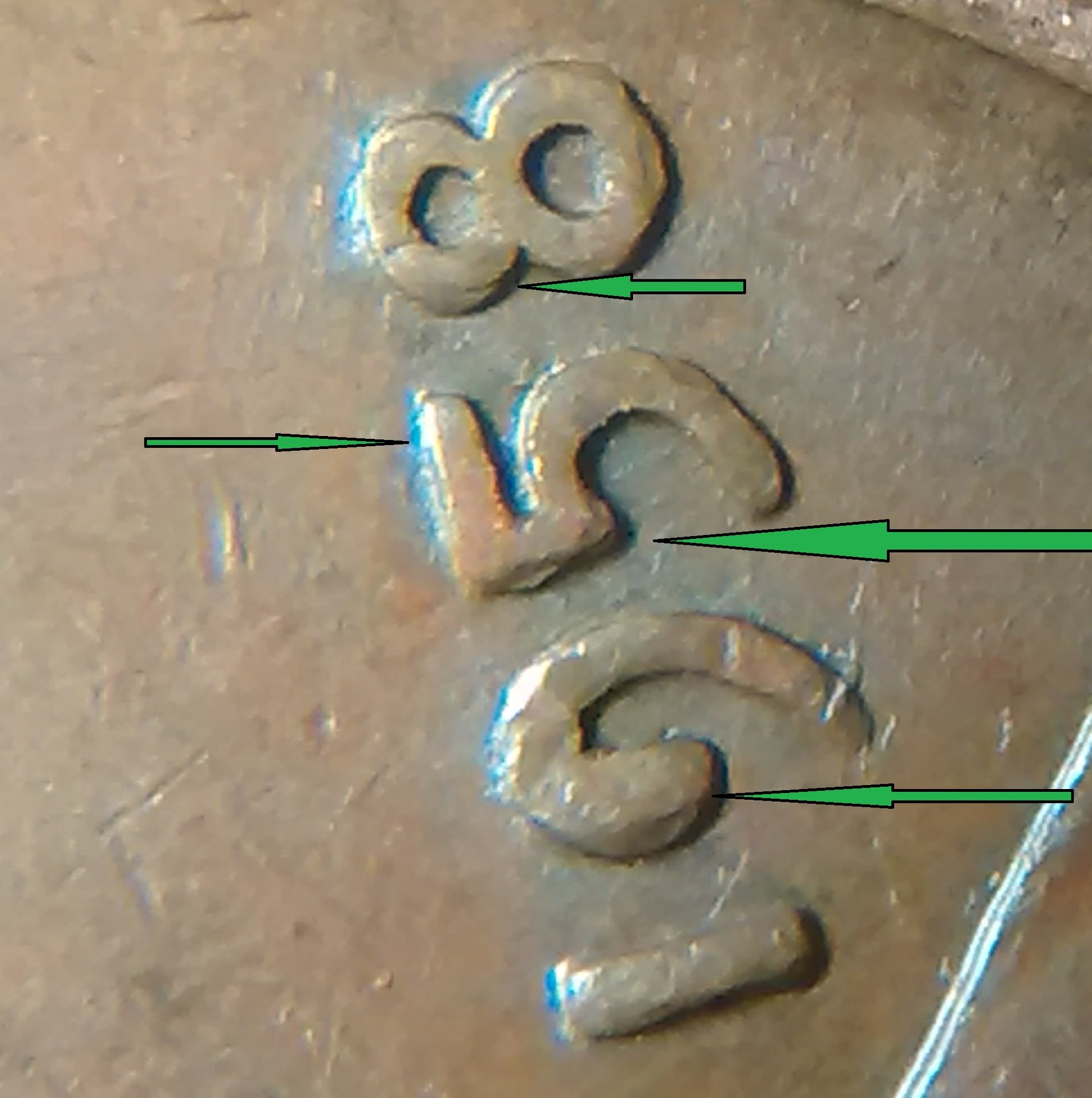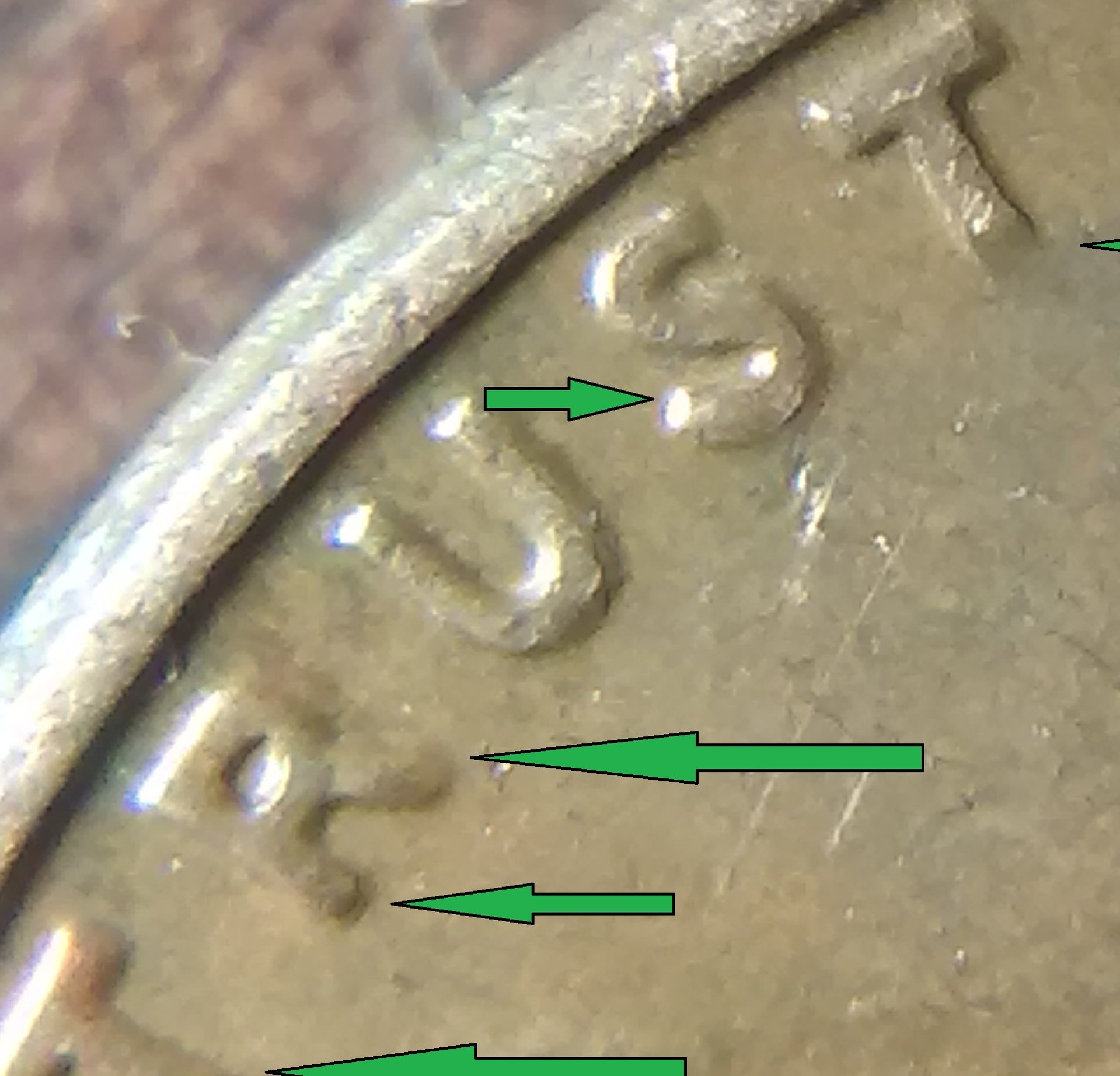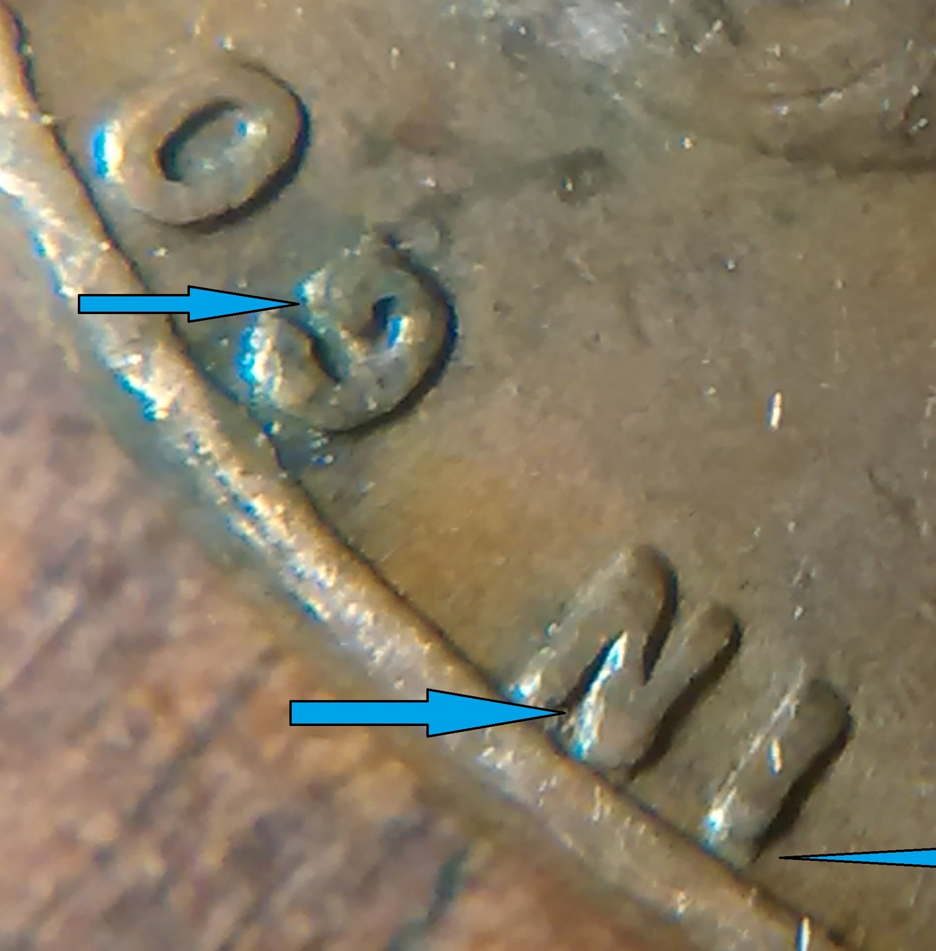 I am afraid I may not be much help. I can not tell to much with the way the light is there. I find it interesting that they (coin grading folks) say the lettering has a small med or large spread that constitutes doubling. I still do not know how one would be able to tell. However, when I'm going through older cents I see that some sport a spread. I have yet to find a good double in cents still.. Found several small doubling in other coinage though. recently (within the last six months) I got a better understanding of what to look for in double dies, it is a directional thing, if the coin is doubling say counter clockwise then all of the doubling would be in the same direction.. Wexlers die and variety has a real good article on the doubling, the direction they take, how it comes to be and their system used to identify, I do not have all of the identification down. I do know after I read it I had a better understanding of double dies. I hope this helped. May and may not have helped. Happy double dies to you...