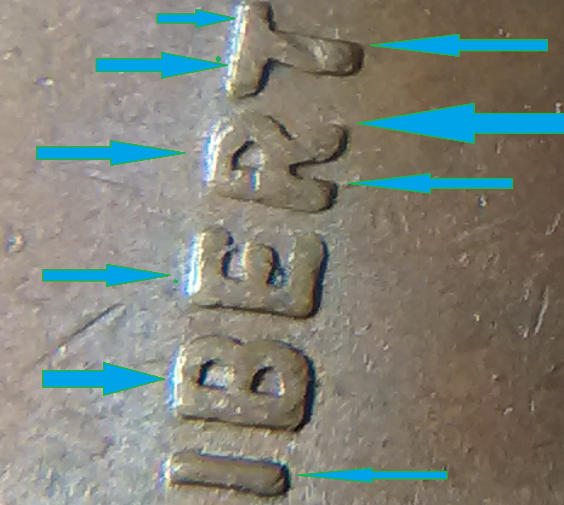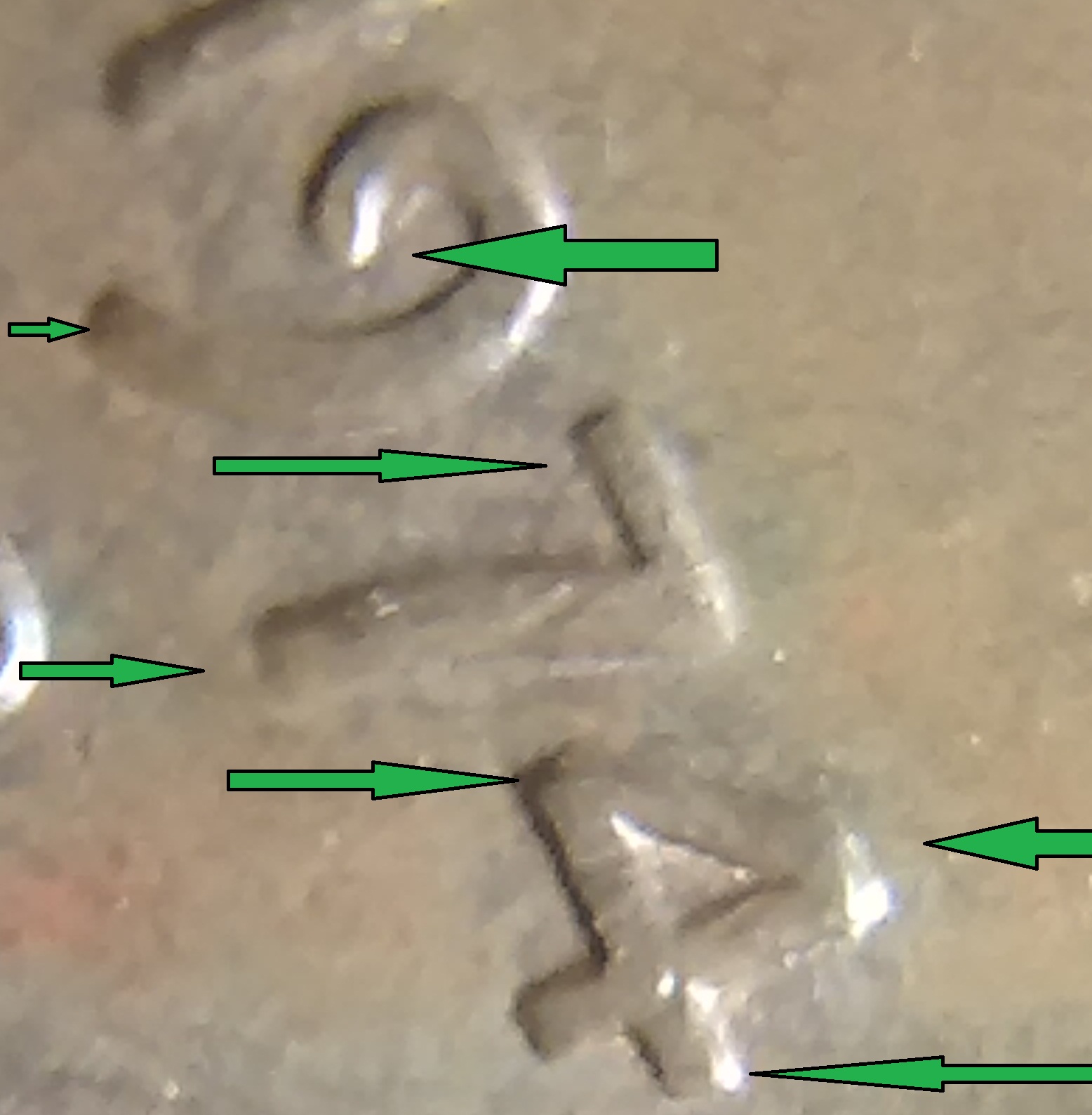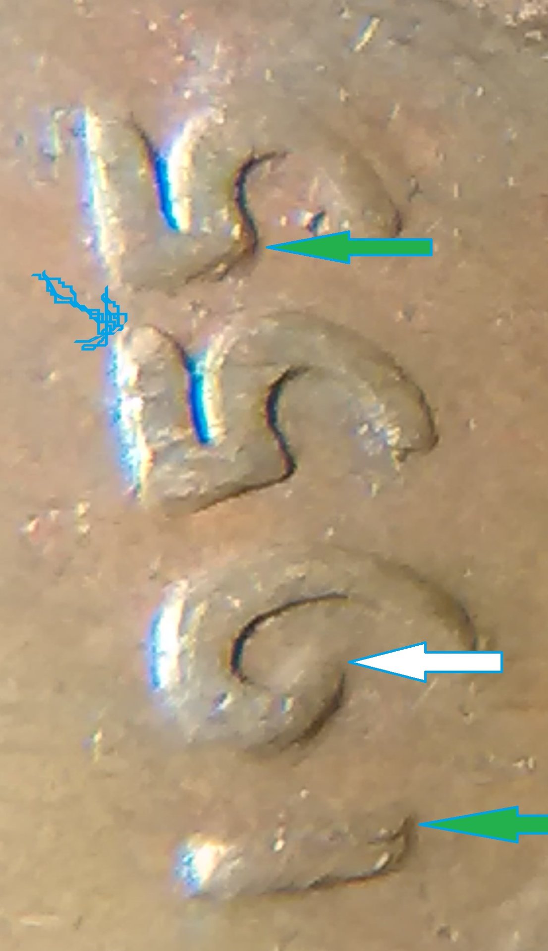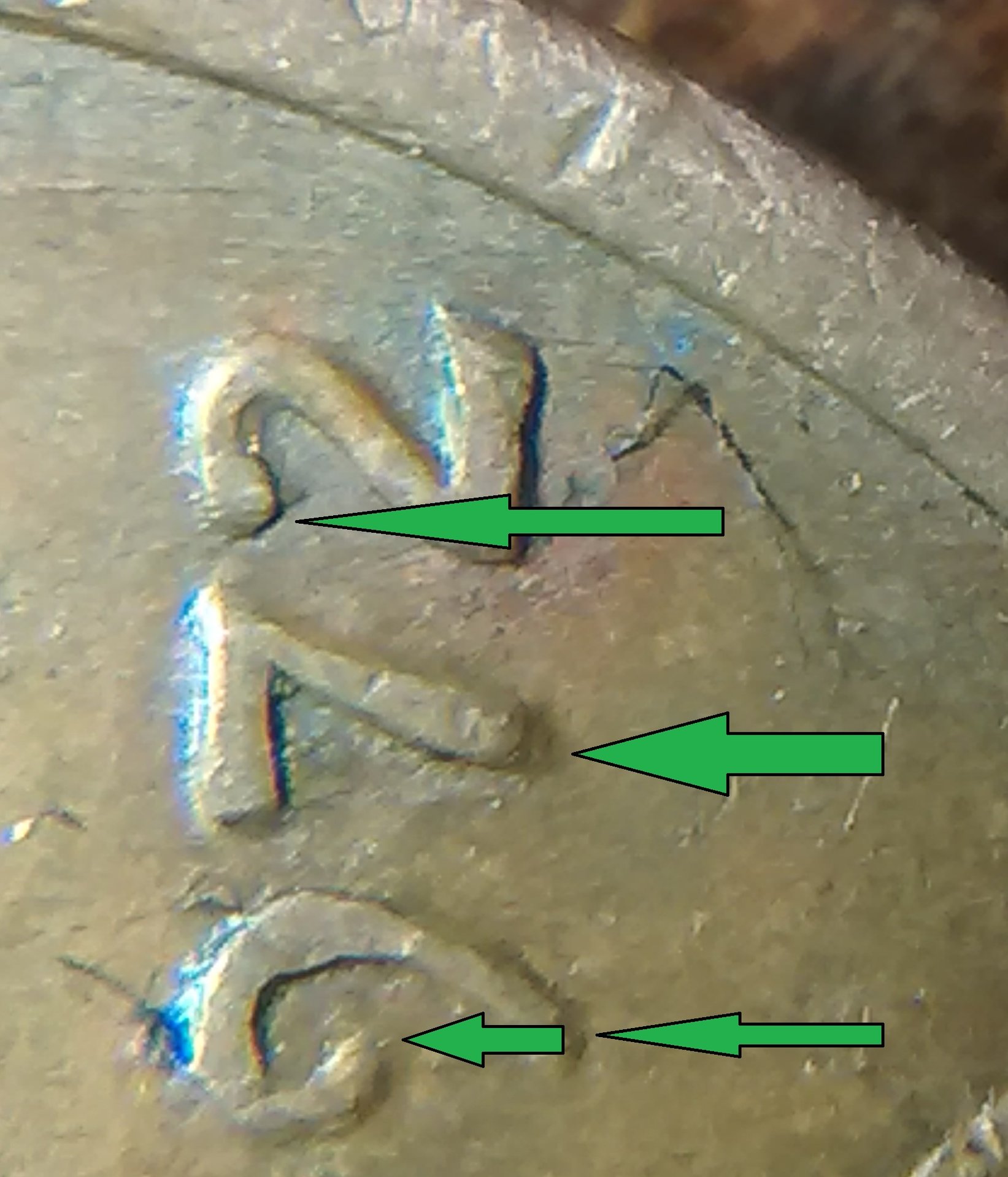 I am afraid I may not be much help. I can not tell to much with the way the light is there. I find it interesting that they (coin grading folks) say the lettering has a small med or large spread that constitutes doubling. I still do not know how one would be able to tell. However, when I'm going through older cents I see that some sport a spread. I have yet to find a good double in cents still.. Found several small doubling in other coinage though. recently (within the last six months) I got a better understanding of what to look for in double dies, it is a directional thing, if the coin is doubling say counter clockwise then all of the doubling would be in the same direction.. Wexlers die and variety has a real good article on the doubling, the direction they take, how it comes to be and their system used to identify, I do not have all of the identification down. I do know after I read it I had a better understanding of double dies. I hope this helped. May and may not have helped. Happy double dies to you...