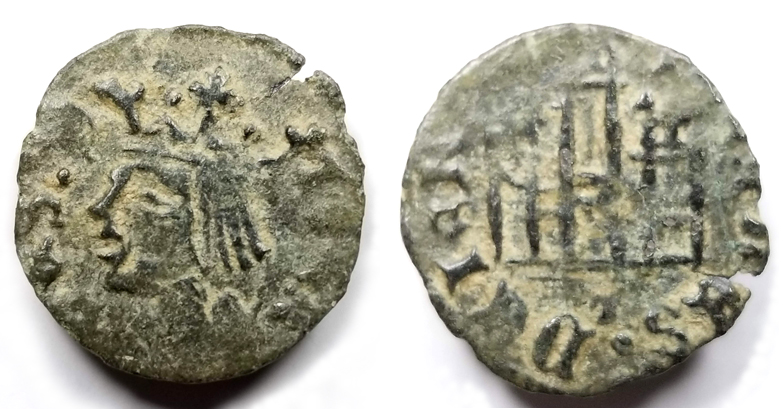 Hello, I have been trying to conclusively identify this Spanish maravedis for several years. It was found at a Spanish Colonial American settlement site in St. Augustine, FL approximately 33 years ago. I have never found an exact match to this coin. I think it might be either Felipe II or Felipe III based on style. Can anyone confirm? And I would appreciate any additional information on the coin. Diameter: 15.53mm (0.79mm thick) Weight: 0.69 grams Material: copper Thanks for any help.