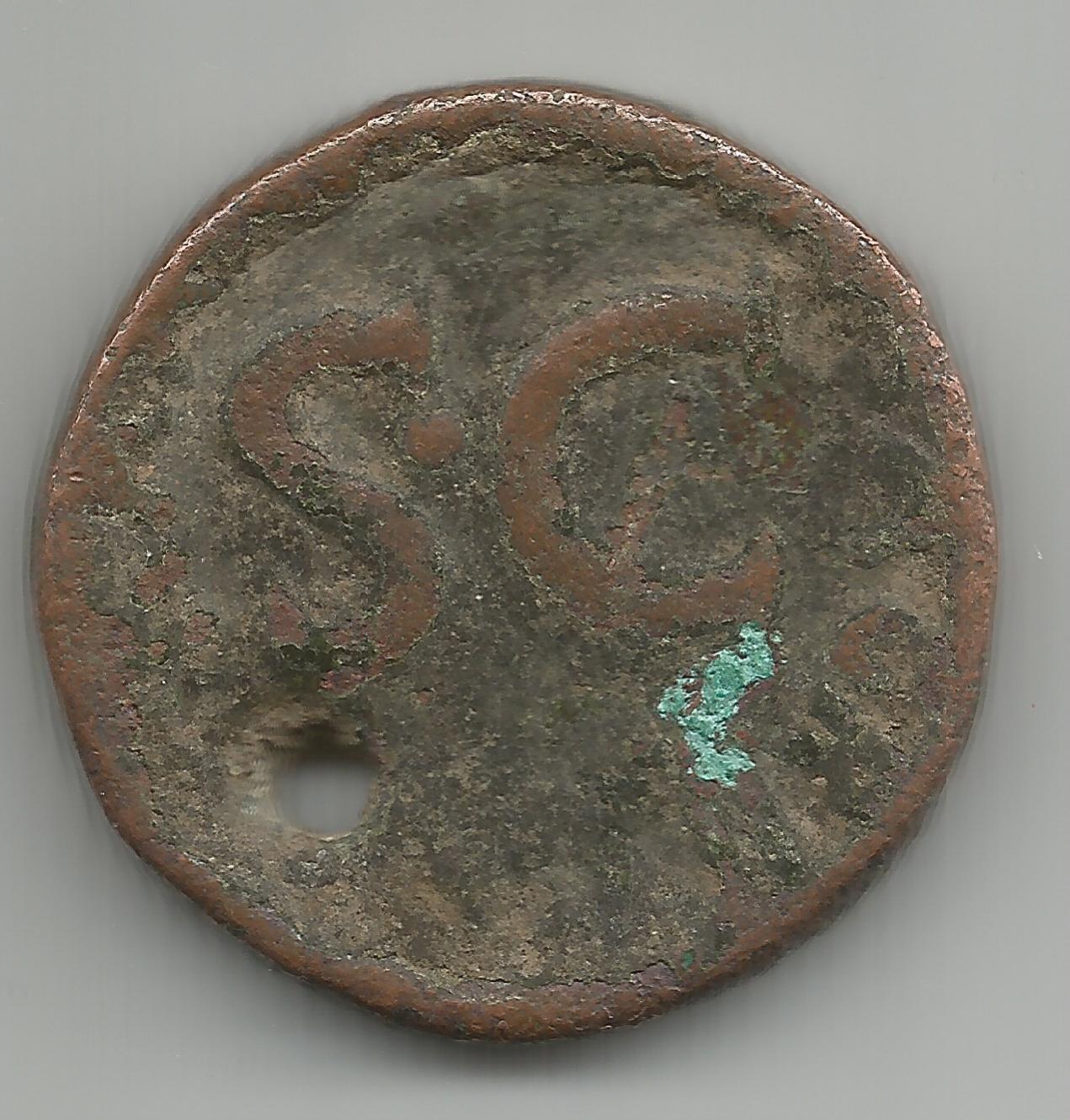 Looks like an early imperial bronze. We'll need diameter in mm and weight in grams to zero in on / make it easier to identify if its an As, sesterius or a Dupondius. try looking at this site, http://wildwinds.com/coins/ric/augustus/i.html you want all the AEs with bare head right/ something something around SC Here's a couple I looked at before my ADD kicked in http://wildwinds.com/coins/sear5/s1680.html#RIC_0389 http://wildwinds.com/coins/sear/s0510.html#RIC_0427 http://wildwinds.com/coins/sear5/s1685.html#RIC_0431 Good Luck