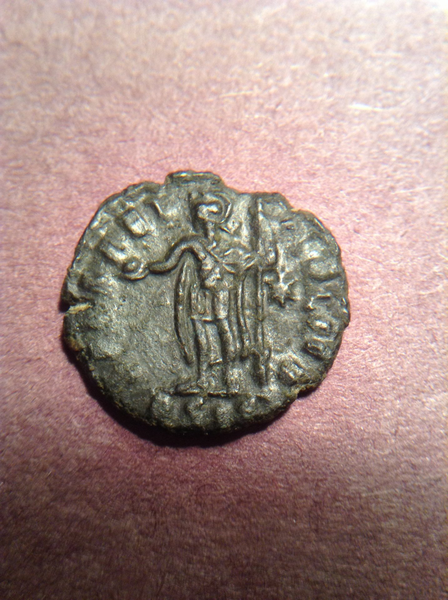 Hi everyone and thanks right away for taking time to take a look at this thread! I have finished cleaning some ancient roman coins and need some help ID'ing a coin. Just need a more accurate ID. The pictures and coin specs are below. Thanks again for all the help in advance! Weight: 1.752 grams Diameter: 15.875 mm AE3 Obverse: Bust facing right (need help on emperor) Reverse: (Soldier?) Standing, Facing left holding globe, star in right field Mint:? Date:? The coins legends are there, just most of the letters can not be made out. Thanks again, Jimmbob82