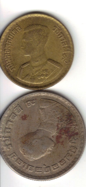 HI, i can tell you those coins are from Thailand. That is king Rama on the front and that is Thai text. I cant tell you the dates or denominations without finding my book. hope this helps you.