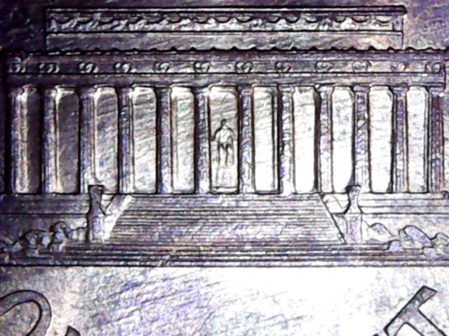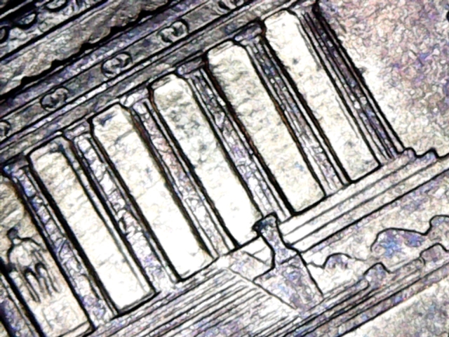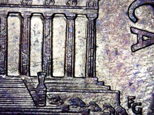 Nothing based on these photos. I was looking for possible doubling and clashing but I see none. Sometimes, to a newbie, a well struck coin looks like there is doubling on the insides of the column but it's actually a part of the design that is simply struck up well. Perhaps this is what you might be seeing?