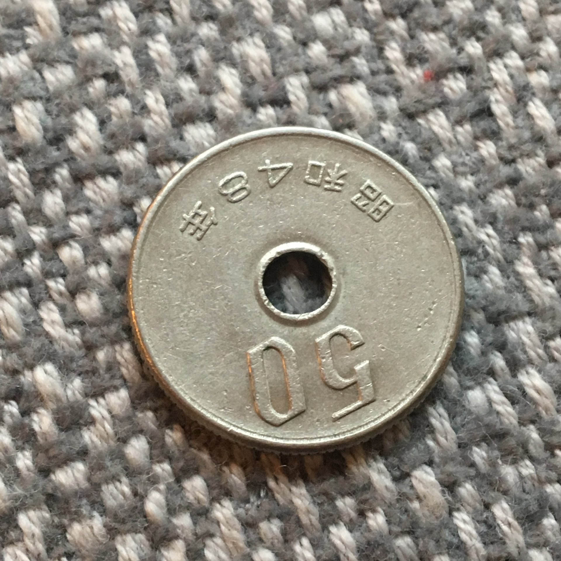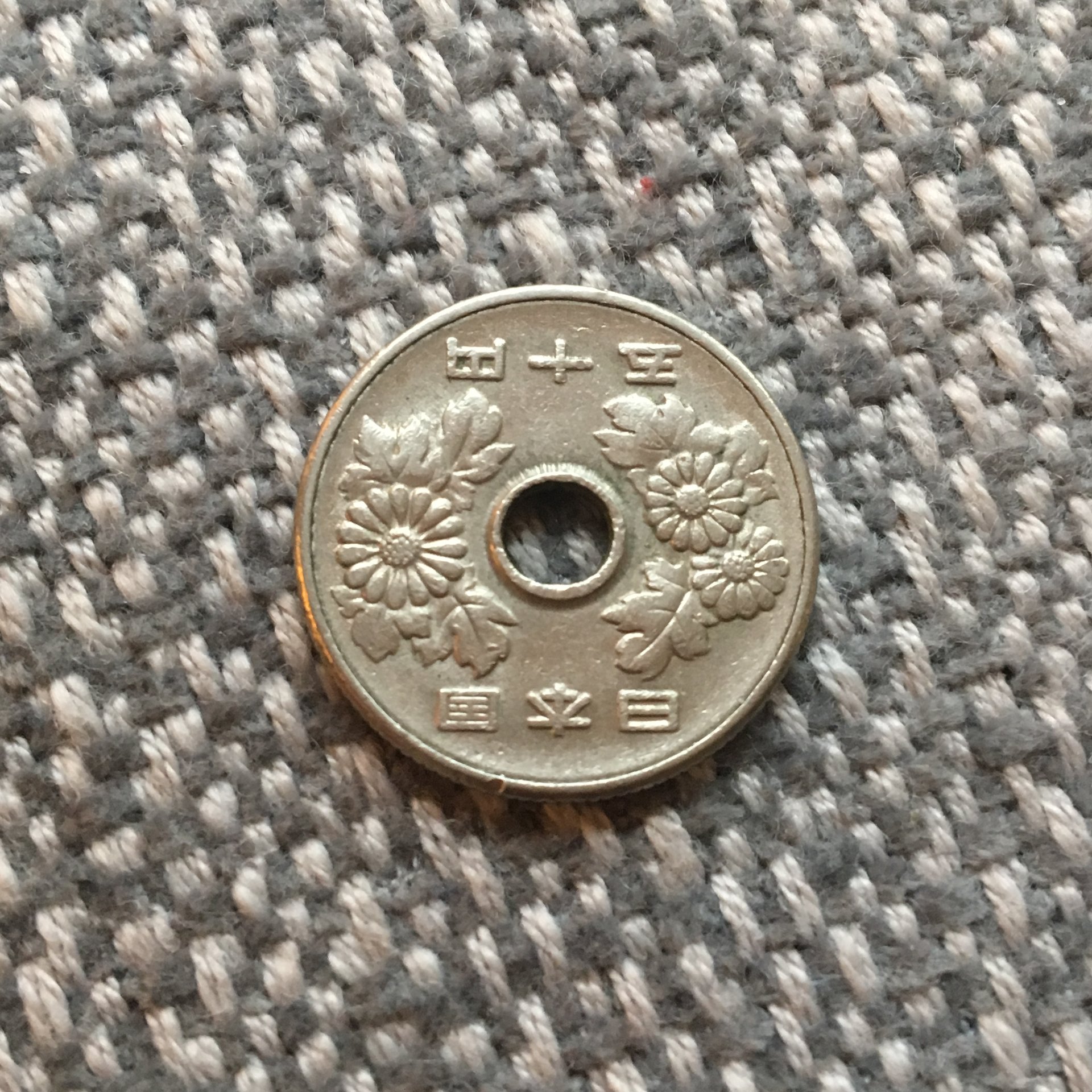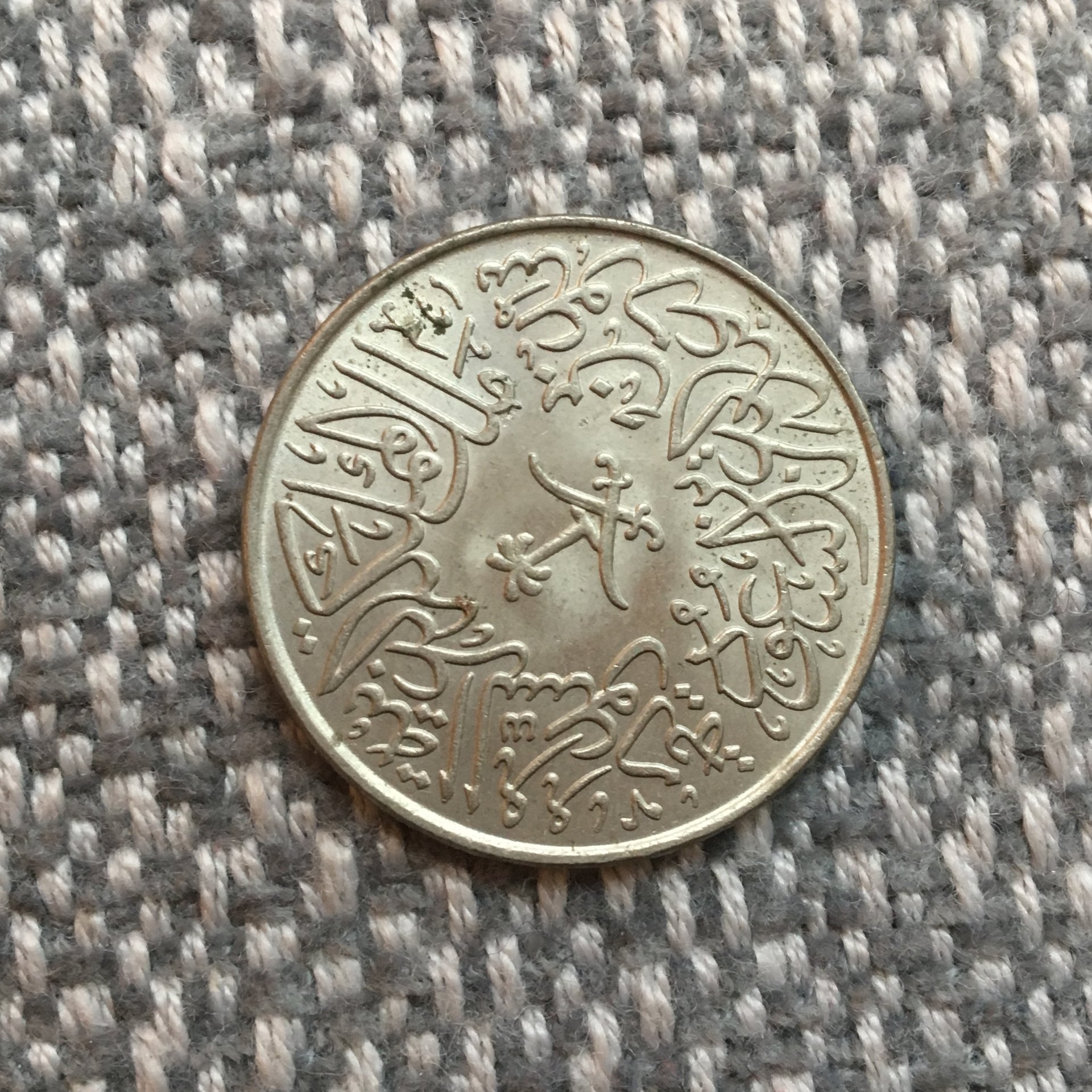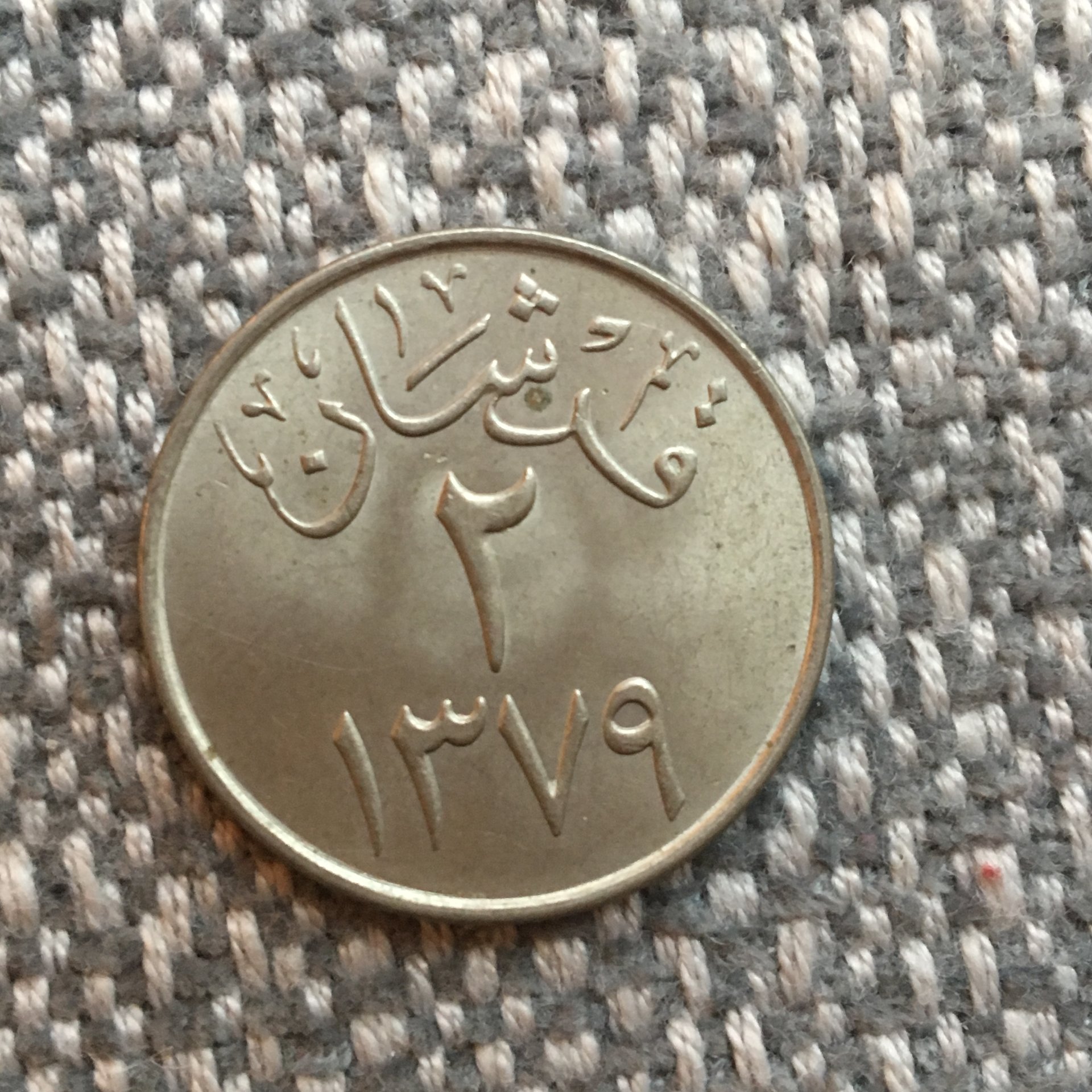 Japan 50 sen 1973. https://en.numista.com/catalogue/pieces1026.html Saudi Arabia 2 Qirsh 1960: https://en.numista.com/catalogue/pieces7840.html