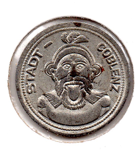 The Notgeld piece from the city of Coblenz (today Koblenz, in the state of Rhineland-Palatinate) features the "Augenroller", by the way. That relief can be found on the facade of the Altes Kaufhaus. It depicts the head of a thief who, in the 16th century, was executed and is said to have said that the Koblenzers should exhibit his head as that would bring them luck. According to the same legend, the guy's head, once chopped off, still rolled his eyes and stuck his tongue out. Anyway, this relief in Koblenz reminds of him. The eyes are constantly moving to the left and right, and every 30 minutes the tongue appears ... Christian