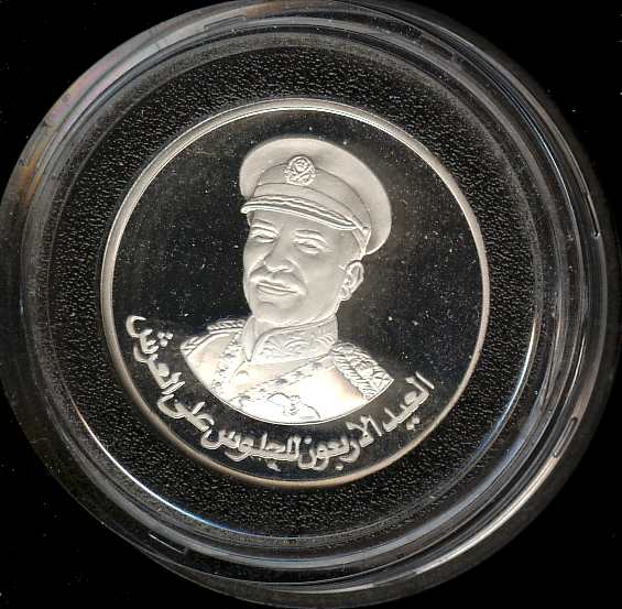 It is a jordan coin - 1 dinar " 40th Anniversary of King Hussein's Reign http://www.jordancoins.com/index.php?c=3&s=18
