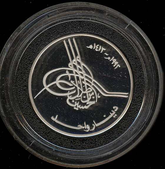I have not been able to identify this proof medal from a Middle Eastern country. The only thing I can make out is that it is dated 1992. My guess is that it is Pakistani, but of course it could be from some other country. Does anyone have any idea where this medal is from, and who is depicted on the obverse?
