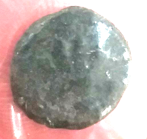 We can't get you a good ID without adequate photos, from what I could make out, it looks more Greek than Roman. Try bringing a mini flashlight, and take photos of both sides.