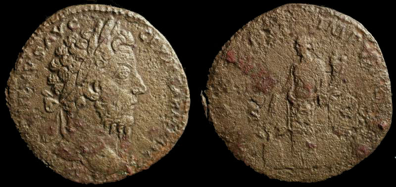 Here is one celebrating his Sarmatian victories (events of 175): DE SARM in exergue. 20-18 mm. Struck Dec. 176-Autumn 177 TRP XXXI IMP VIII COS III PP A pile of arms RIC 367, Foss 60 variety