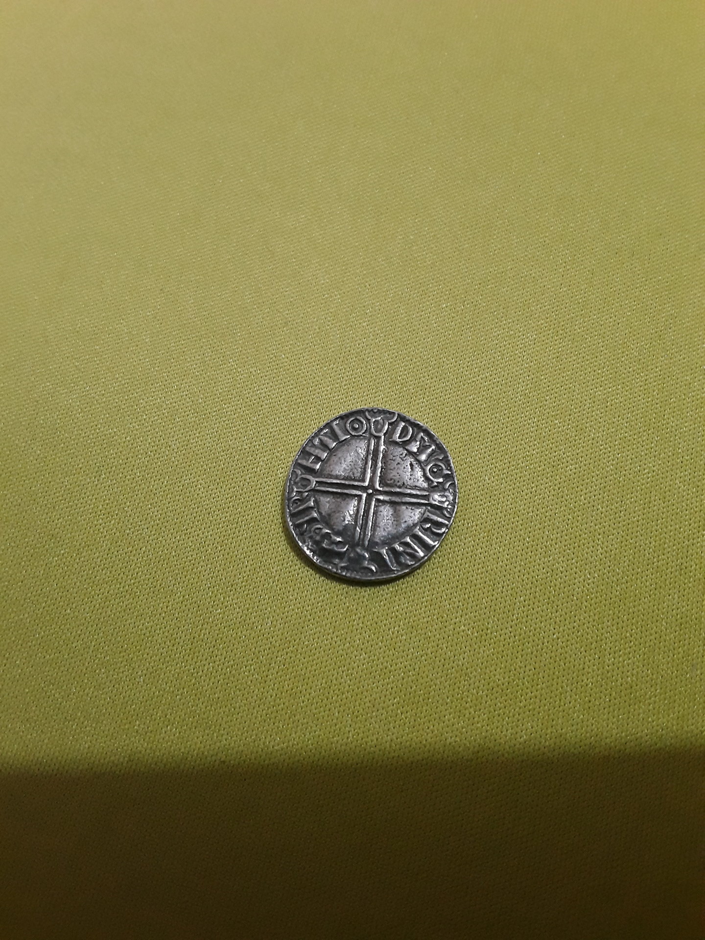 It looks like a Hiberno-Norse penny of Sihtric III Olafson, see here. If genuine, your coin would be quite a precious rarity, but judging from the pictures, I very strongly suspect that what you have is a modern replica. Such replicas are, for example, sometimes sold in European museum shops.