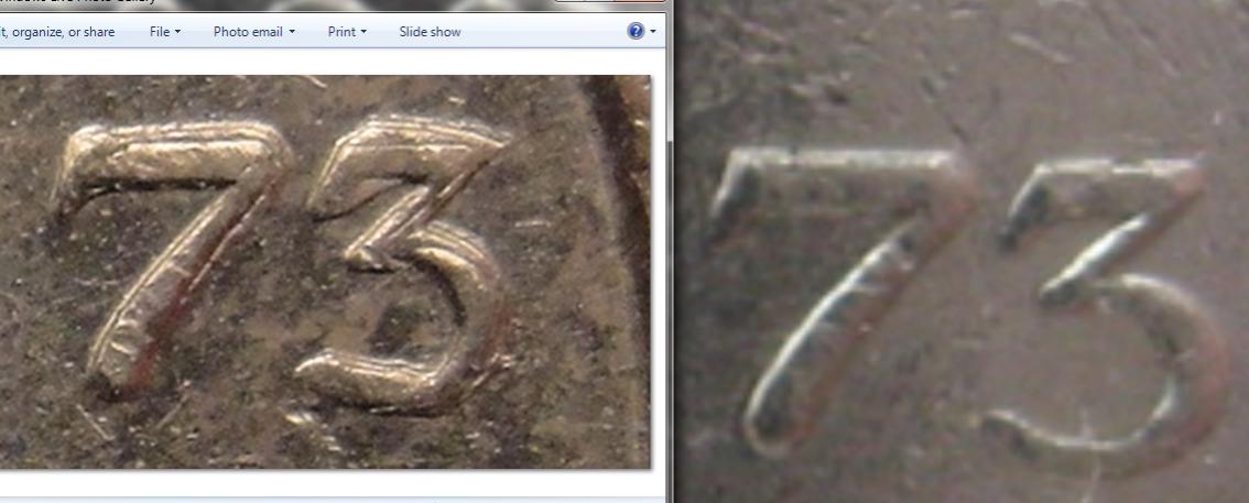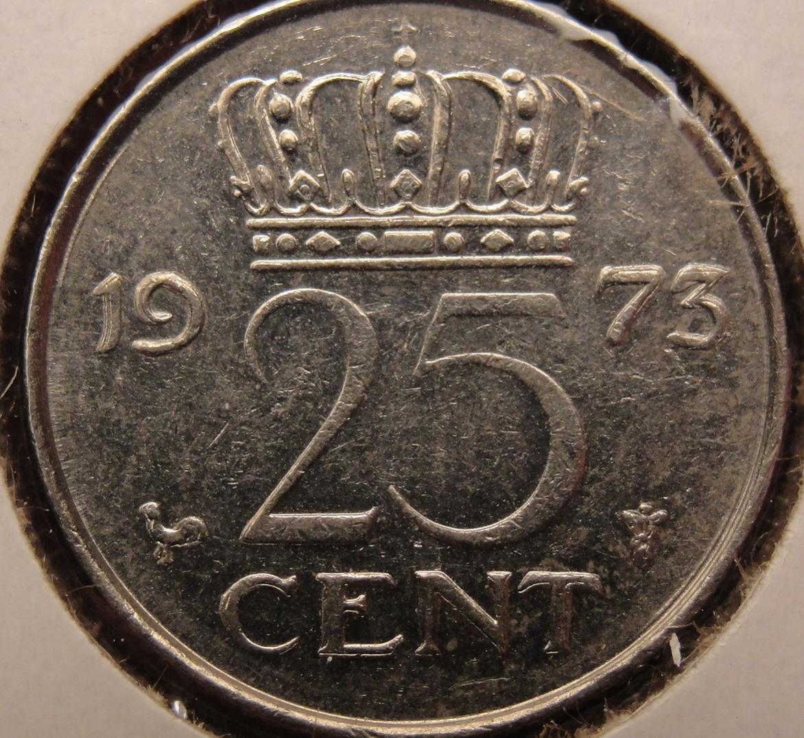 compare I found a normal one to compare to here: http://www.catawiki.com/catalog/coins/countries/the-netherlands/175449-25-cents-1973 and here are some nice comparison screenshots: