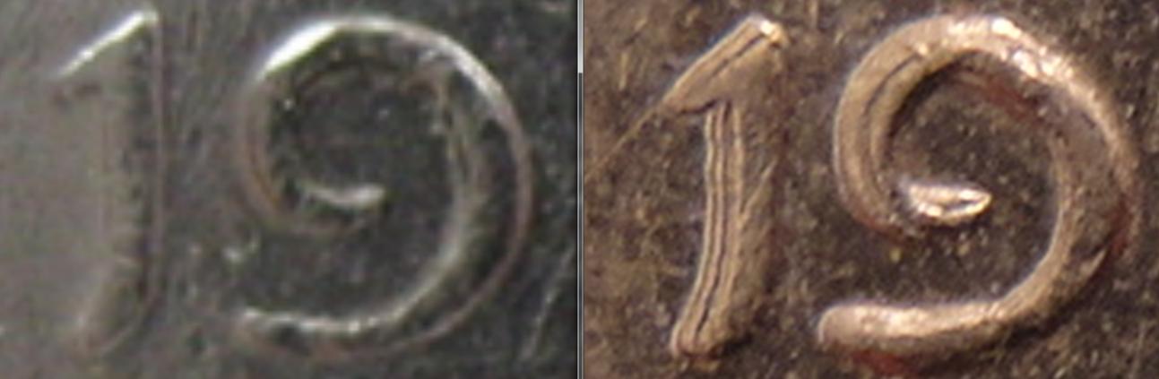 The "1" does exhibit notching and the "9" does show doubling within the curve which leads me to believe this is die doubling.