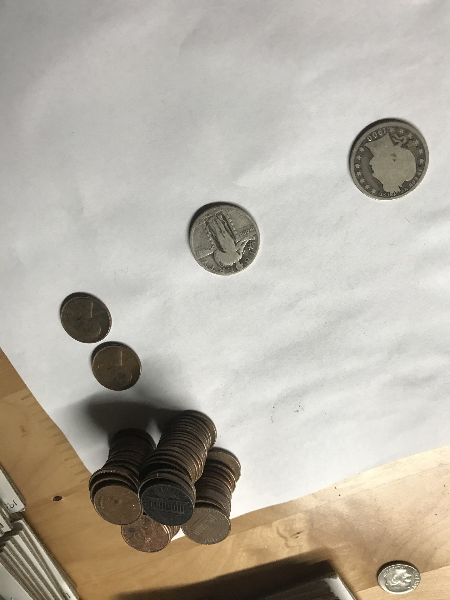 so every Friday I go to the bank to cash my check and usually alway get 5$ in pennies. Well I was standing in line and thought I’ll get $40 in quarter and my $5 pennies just open them this morning (Sunday). And wow I can’t believe I didn’t open them sooner!! I would have ran back to the bank and got a lot more!! So in the third roll of quarters I got a 1900 Barbara and what looks to be a 1929 standing liberty !! And out of my $5in pennies like alway hand full of copper and two wheaties !