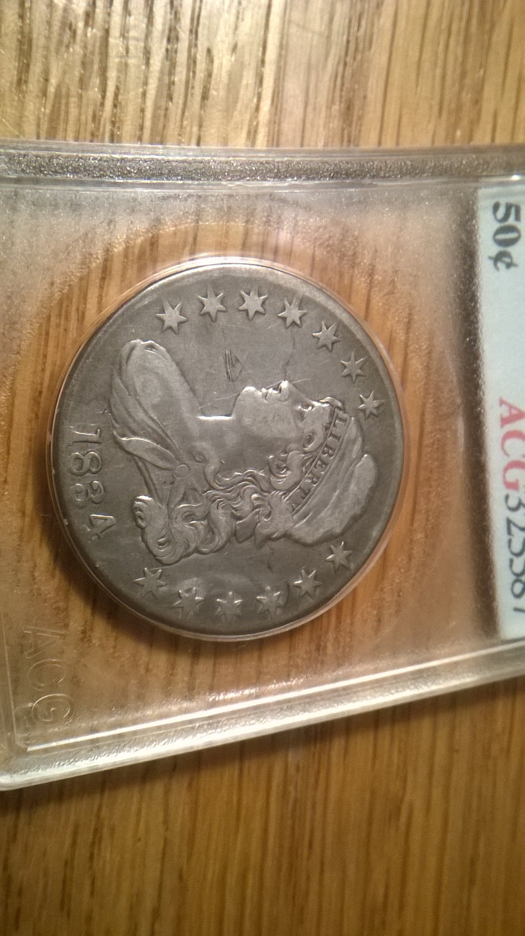 It's good that you like a certain type of slab and all (I'm the same), but just remember not to trust any grade that ACG assigns, and that the coin might be more collectable if busted out of an ACG slab. Shame about the graffiti/scratching, but it's a nice original looking coin! I'd say VF
