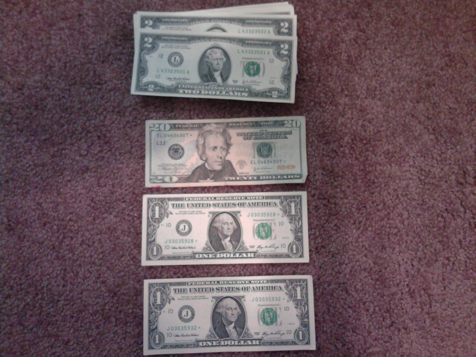 Your 2003A SF $2's are worth not a penny over face value or will not be for a long time, sorry . The government is planning on printing more. They just issued the 2012 Fiscal year print order and they will be issuing a Series 2009 $2. I could go to the bank right now and get as many '03A $2 SF's as I can afford or want. They are not rare and you might as well use them to buy something else collectible if you intend on collecting. If you are specifically interested in collecting $2's, at least do it right:smile: Buy a strap of used $2's and search for star $2's (which are fairly common too). Get a nice looking district set of 1976 Series. Get a district set of '03A too. Find one nice example of Series 2003 $2 and a 1995 $2. Set these aside, but your strap is worth no more than $200. A week ago, I came accross some consecutive 1976 $2's. One of them was even an error. In that same strap, I found 3 $2 2003 Minneapolis stars, and an uncirculated 1995 radar with its consecutives. Nice $20 and $1's though, I will give you credit on that. Are the $1's consecutive? PM me if you wanted to know more about 'district sets' and such. I will be glad to help you out to get a fairly nice collection of $2 FRN's. :smile