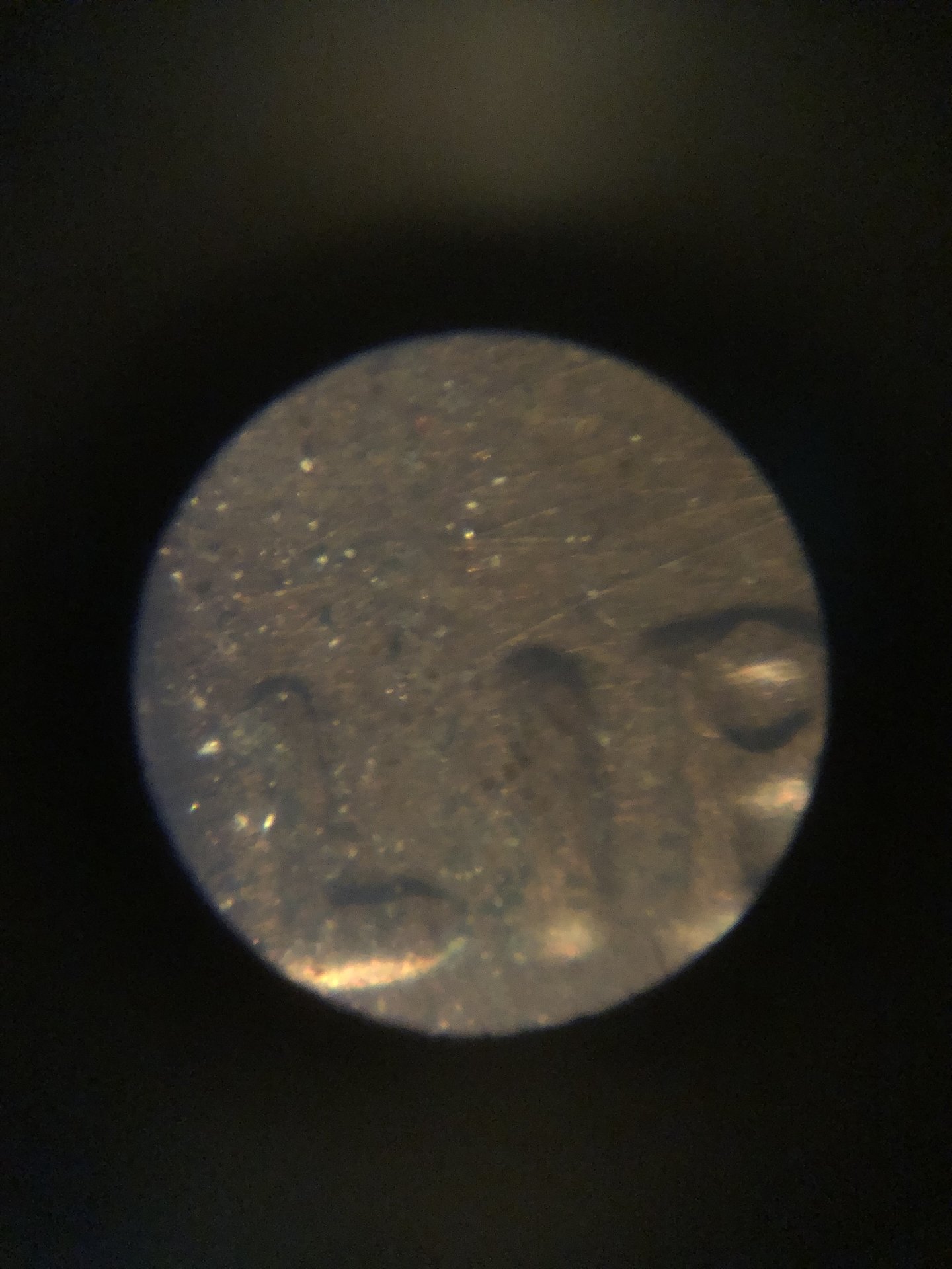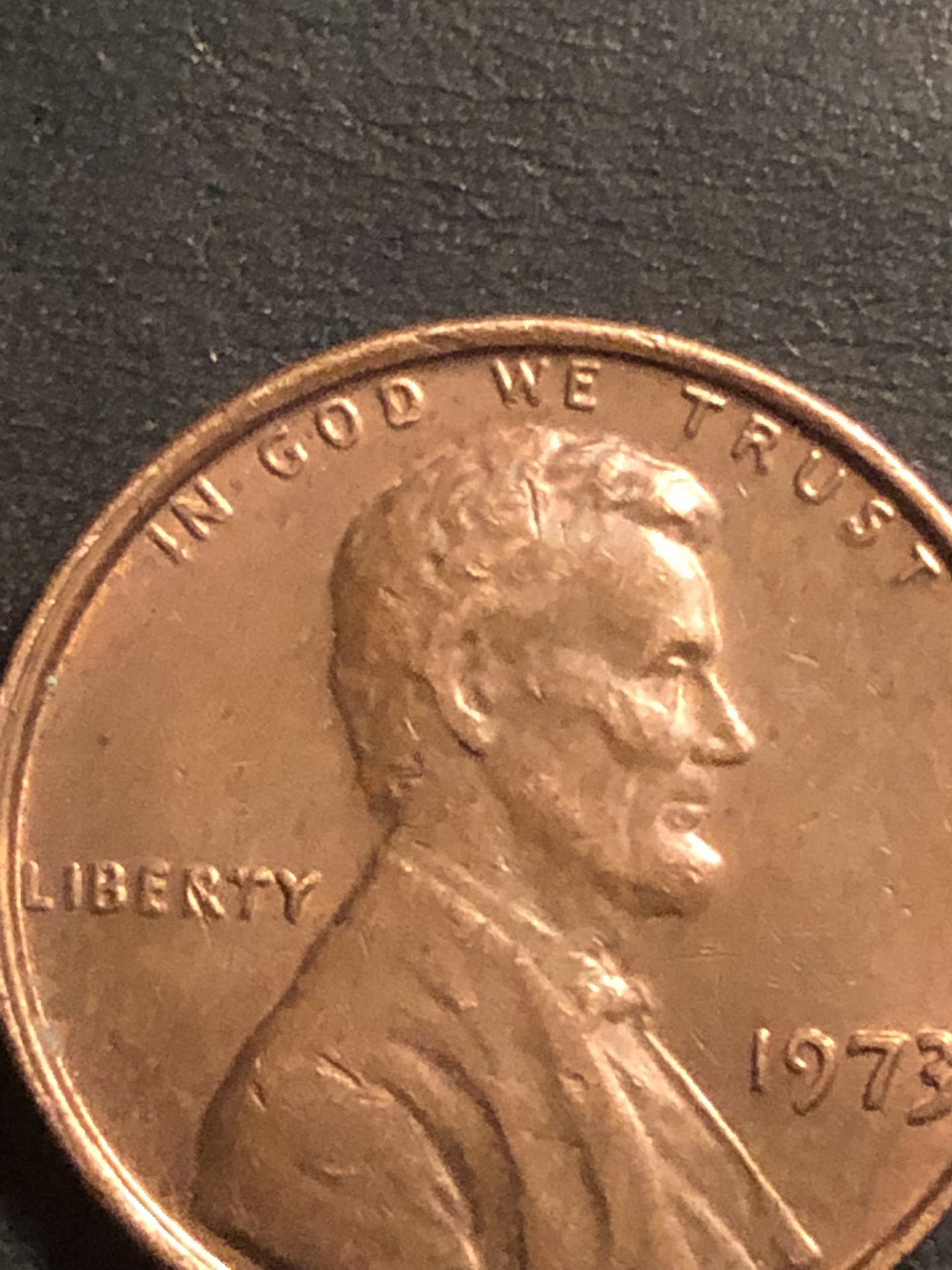 found a 1973 penny tonight. Looking at it you Can tell liberty is off just a smudge. I then put it on a microscope and found this... any ideas??
