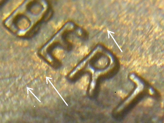 I tried matching this coin up and I tried to find die markers but was unsuccessful.So my only conclusion now is the is a new die.The E in liberty has a strong die scratch that no dout would be used as a marker.The 5 listed dies for this trans coin has none.Oh well thats for viewing and Leave a comment.Thanks!!:yes: