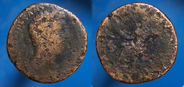 I like the nice smooth Domitian but am not a fan of the rough Commodus. I have plenty of rough coins but really prefer wear to corrosion. I am reminded of my most worn Claudius which can be identified to the reverse if you know the series. I liberated it from a junk bin because of its surfaces and patina. Perhaps VG/Fair???
