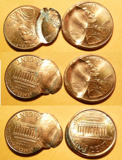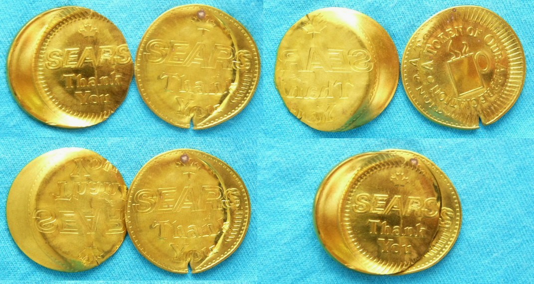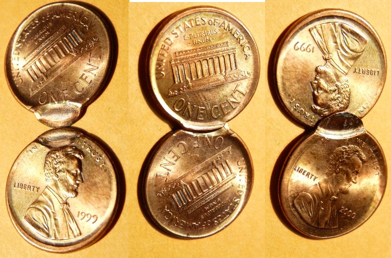 hi I would like to show photo of some errors, that I have, and everybody who wants to do the same, more the welcome to this thread. may be after wile we will have nice gallery?:hail: Mated Pair, cool thing is about this errors, that it is the for Lincoln cent and Chuck e Cheese tokens, the same type of errors. last photo is Triple struck on Sears token, well I wish have the same for dollar or half dollar, OK for 25ct?:thumb: