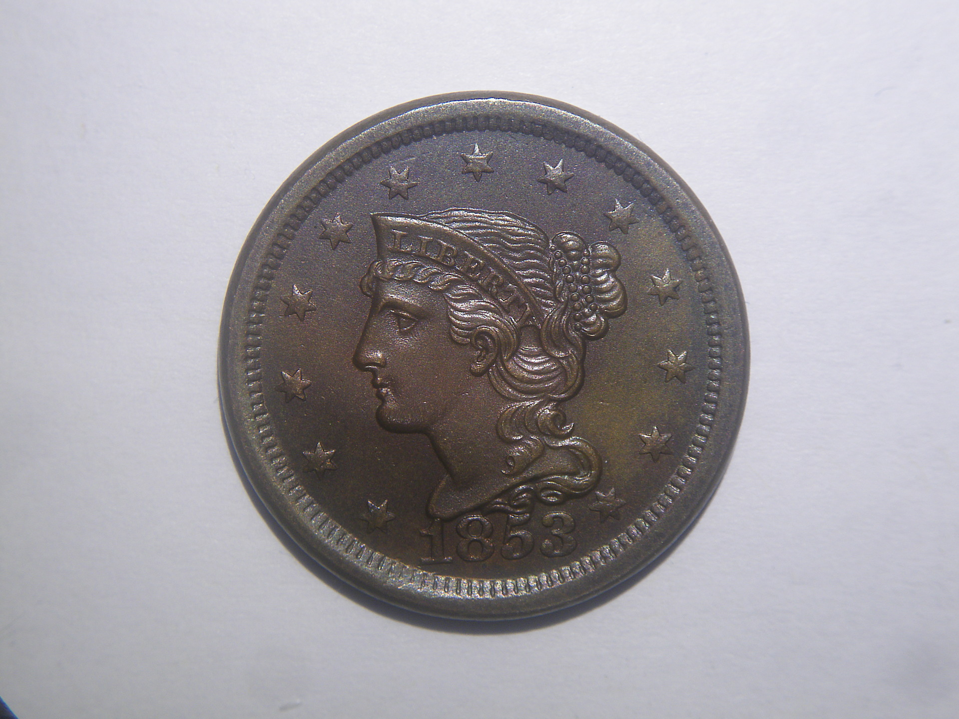 She's a pretty coin I got a pretty 1853 myself my best late large cent I love all them big penny's the earlier the better