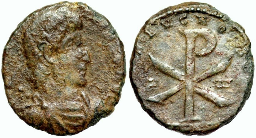 You could not have had a better start. Great coin, from one of the most reliable and knowledgeable dealers out there, and a nice guy to boot. Here's my version of your coin, and my write-up. So the year is 350 A.D. There are two Roman emperors: Constantius II in the East and Constans in the West, both sons of Constantine the Great. Magnentius, a former imperial guard commander, arose in the West and usurped the rule of Constans, who was soon trapped and killed near the Pyrenees. Magnentius had to act fast to solidify his base of power because rivals in the West (such as Vetranio) were gathering troops, and soon Constantius would arrive from the East to avenge his brother. Perhaps as a genuine gesture of piety, or perhaps as a crass means of rallying the support of the Christian faction, Magnentius had this coin struck featuring a large Chi-Rho monogram. (It also features a portrait that makes Magnentius look like Conway Twitty.) While the Chi-Rho had been featured in small details of Constantinian coinage, never had it held such prominence. The iconographical message is startling: Magnentius, not the sons of Constantine, was the true heir to Christian Empire. After all, his Chi-Rho was bigger than their Chi-Rho. Sadly for Magnentius, his Chi-Rho couldn’t save him, at least not physically. He was soundly defeated by Constantius at the Battle of Mursa Major in Croatia in 351. (Magnentius personally led his troops into battle; Constantius left the battle to pray.) Magnentius’s forces suffered a final defeat in southern France at the Battle of Mons Seleucus, after which Magnentius died the “Roman death” by falling on his sword in 353.