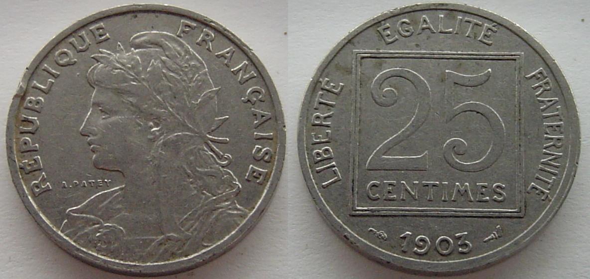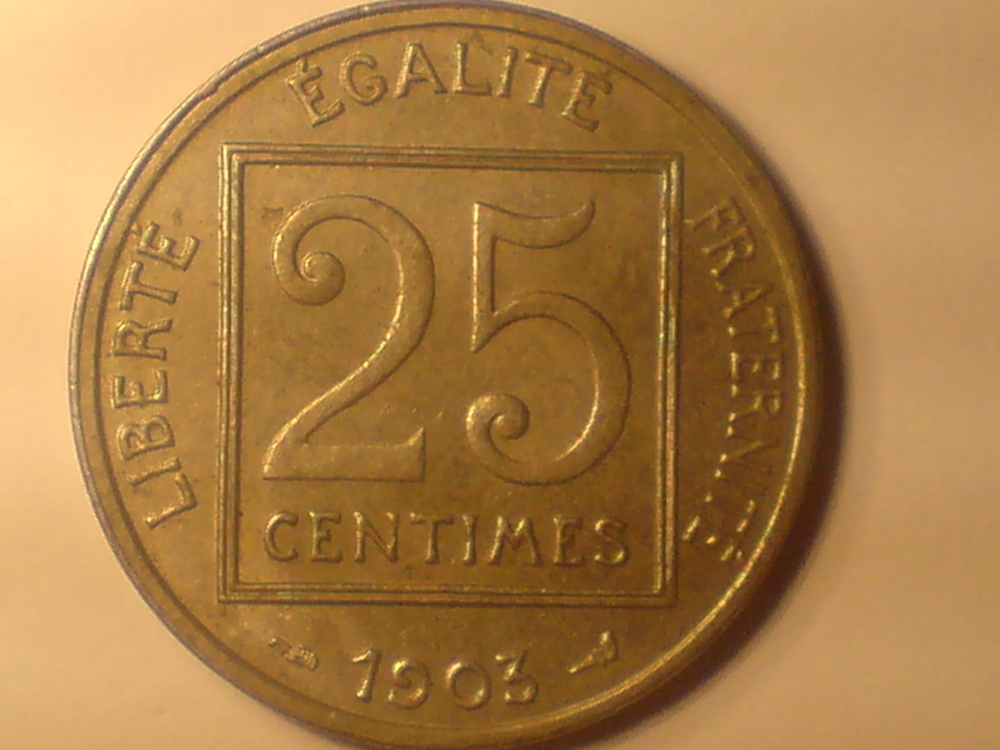 That's a beautiful 1903 25 centimes, I always liked that design. I have one myself but yours is much nicer. Great pickup!