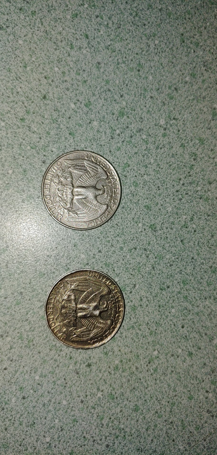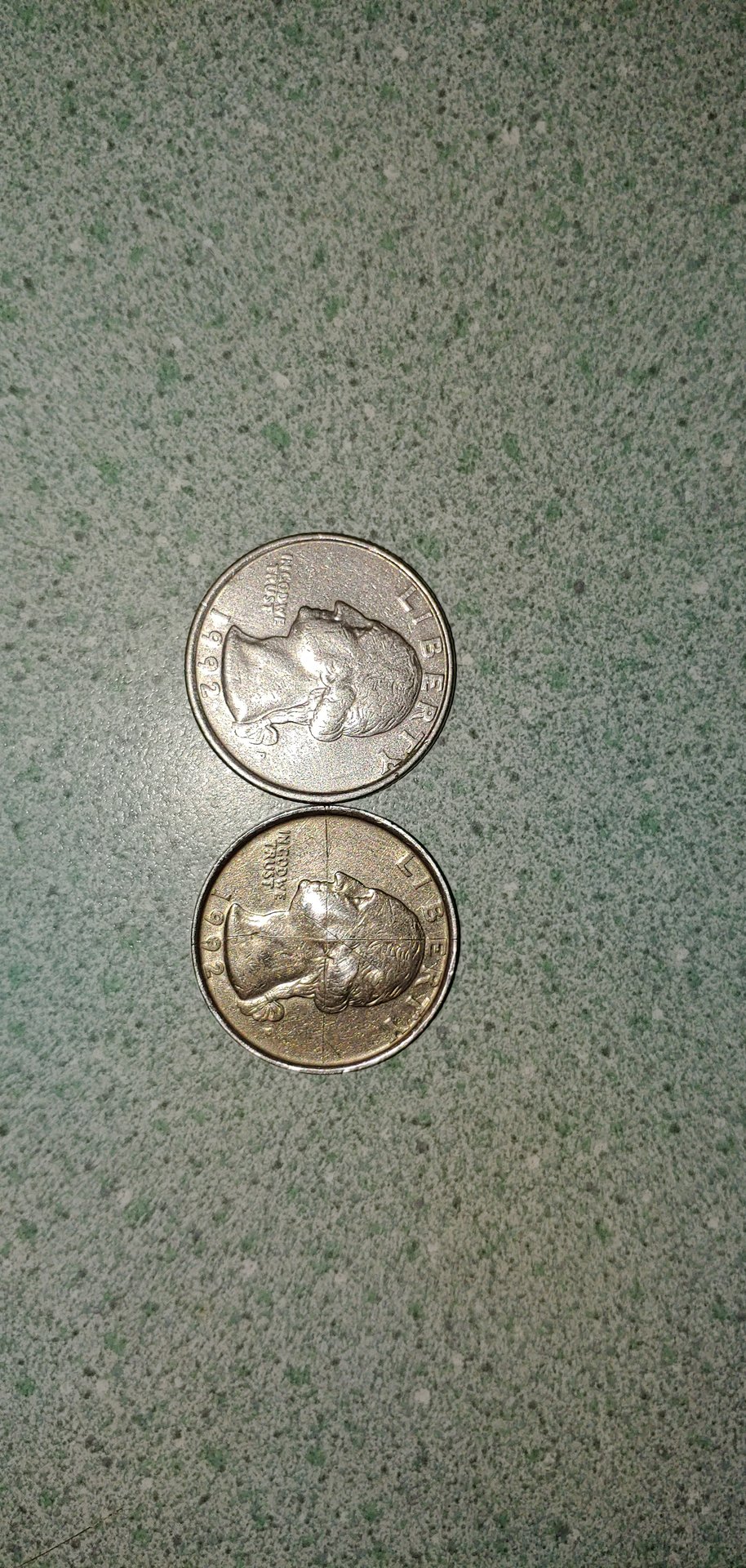 Going through quarters this 1992 is a lot thicker and has no outside ridges. I have never collected coins in just caught my eye