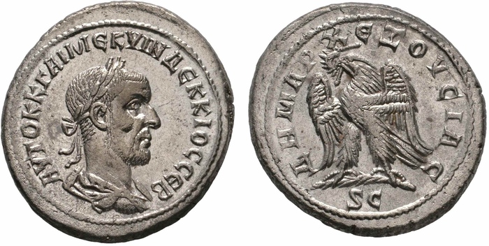 Oh thanks...hard to tell on these. When you look carefully at the antoninianus you can make out the letters DEC as you get towards the end of the legend, however, you certainly could be correct on the bronze piece!