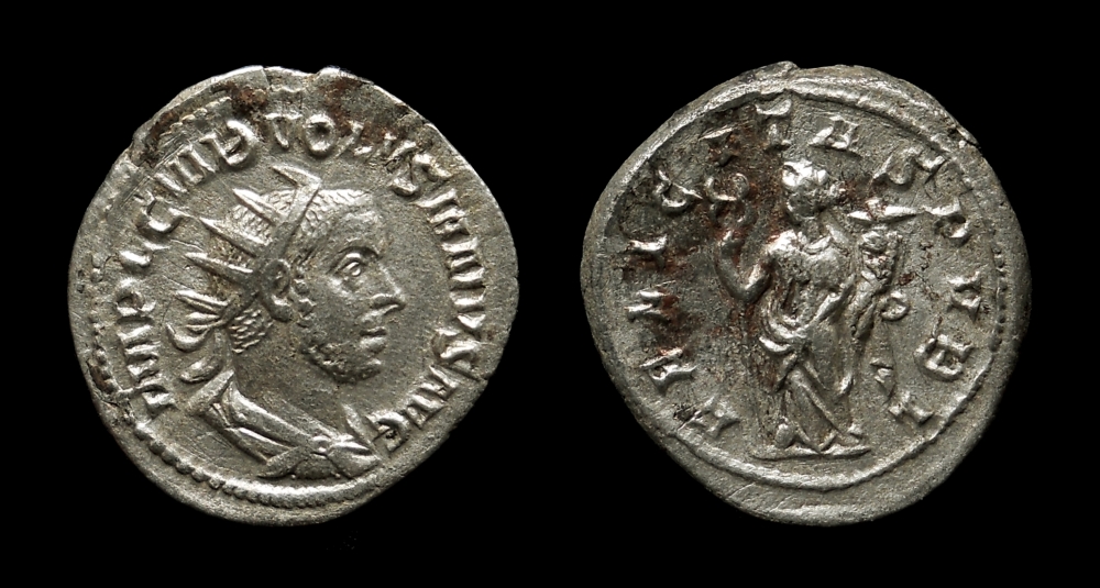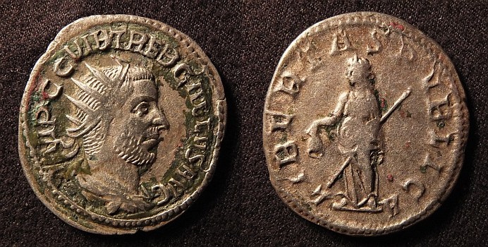 Nice pickup Mat. Here is my only one: TREBONIANUS GALLUS AR Antoninianus OBVERSE: IMP CAE C VIB TREB GALLVS AVG - Radiate, draped and cuirassed bust right. REVERSE: LIBERTAS PVBLICA - Libertas standing left, holding pileus and scepter Struck at Rome, 251-253 AD 3.5g, 21mm RIC 38