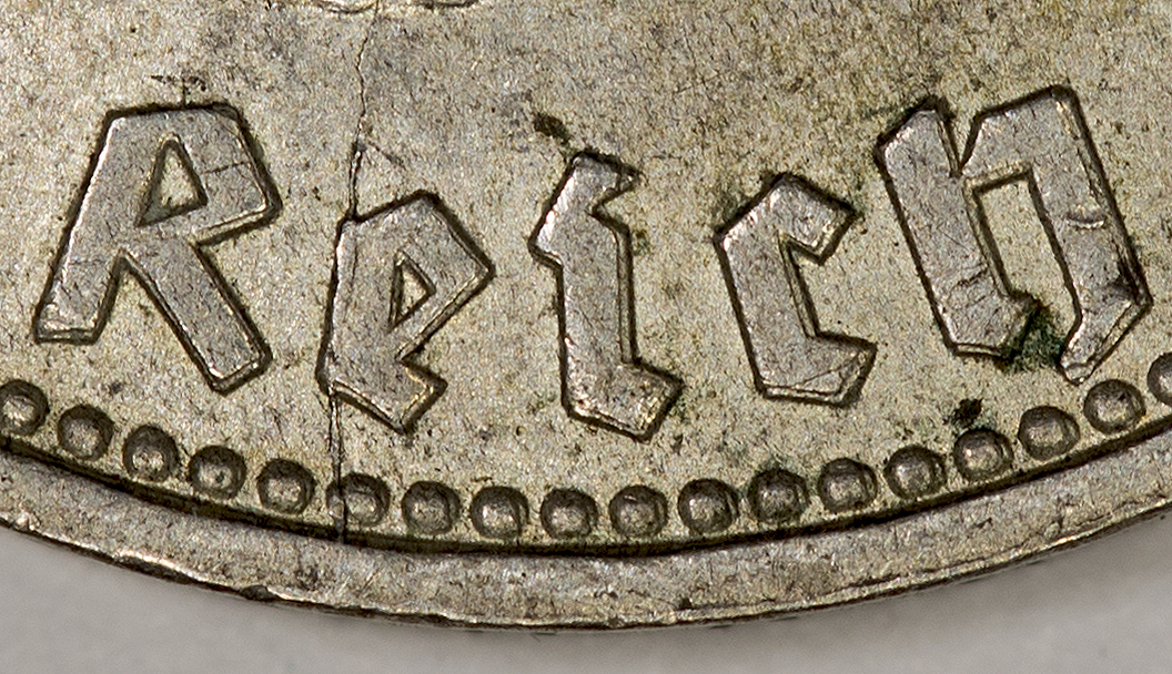 Happy Saturday, everyone! While some might be preparing for a night on the town, and others might be settling down for an evening of "Netflix and chill," I...I have been imaging coins, specifically some highlights of today's flea market outing. I'd like to share them with you now, if you'd like. You'd like? Okay. Here goes. This first one I found in a cardboard set titled "Belgium Modern Uncirculated Type Set." The other coins (1965 5 Francs, 1 Franc, and 50 Centimes, 1964 25 Centimes) are also all uncirculated, but the cherry on top of this deal was the surprise 1954 20 Francs at the beginning of the set. Second, I picked up a nearly complete (it was missing the 1926 Far 6) Canadian 5 Cent Whitman folder, and was surprised to find the 1925 in there. (I also found a nice AU 1962 Double Date, but it's only a few dollars, so no images for you today, mister!) This will be my second example of the date after my NGC XF45. Third, and this is my favorite pickup of the day, I finally found a lovely UNC Germany (Westphalia) Notgeld gilt 10,000 Marks. I've seen a few examples where the outer layer has already worn off (think the 10% silver Mexican 1 Pesos from the 1950's-1960's), but this one absolutely glows. A definite keeper. Finally, the cherrypicker in me was immensely satisfied to find not one but TWO Third Reich varieties. First, I found a nice AU 1937 D 5 Reichsmark with a tripled obverse. Now, I expect to be corrected if this is something similar to Longacre doubling. I'll post closeups here for you: Mintmark: Eyebrow showing doubling: How about a little Paul: And maybe some 1847 for good measure: Finally, we have a 1939 D 2 Reichsmark with a tripled obverse and doubled reverse. I'm seeing all sorts of strong doubling/tripling on this coin. I'll post closeups in a reply (limit of 10 photos per post.)