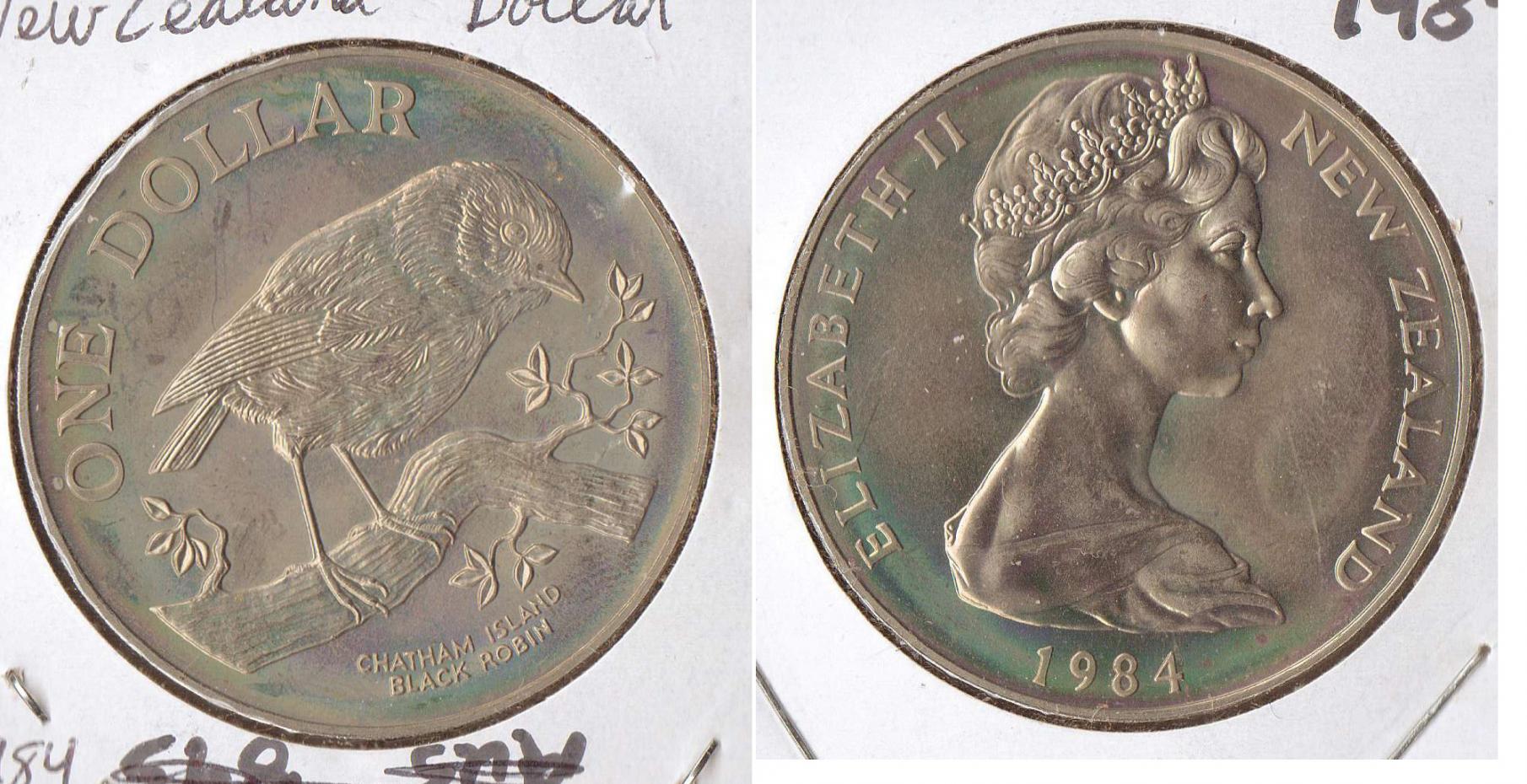 Last but not least, 89 and 90. 1990 also had a dollar coin in the modern style, smaller and gold colored with the kiwi bird.