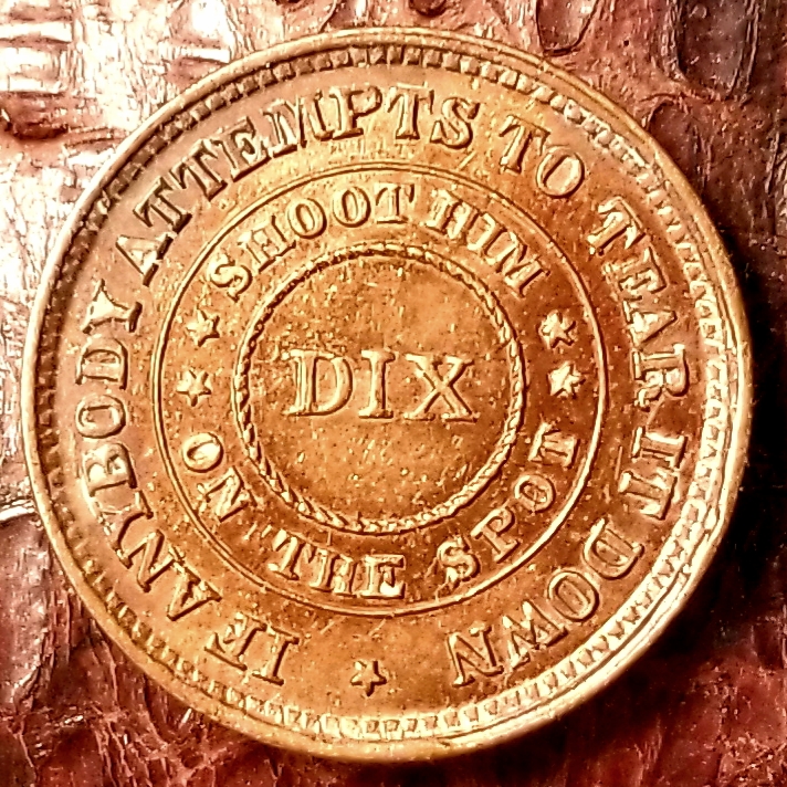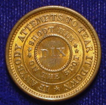 There is an error variety of the Dix token that reads, “Shoot him on the spoot.” There are several minor varieties of this design.