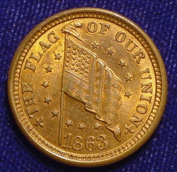 Here are both sides of one of the "shoot him on the spot" tokens. The American flag on the obverse is obviously part of the message.