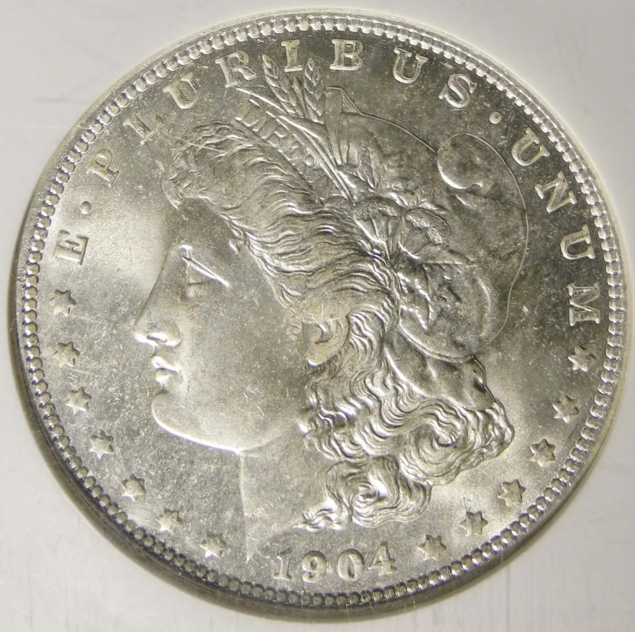 I am not way off. If it were a 64 with a shot at 65, it would have been slabbed a long time ago. The coin is polished, and will not see anything but a "details" slab. I have been collecting Morgans for many years, and have seen tons like that. NO way it is MS. Here is one of my three 1904o coins. This one is MS 65, and a weak strike--NO COMPARISON with your coin--no offense.
