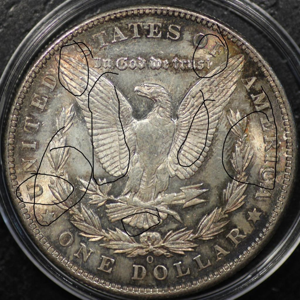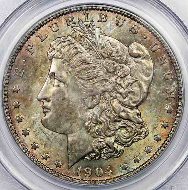Here is another one of my own 1904o coins. This one is a MS 64. Despite the toning, one can see more detail on the high spots, despite a below average strike, making it definitively MS mid grade.