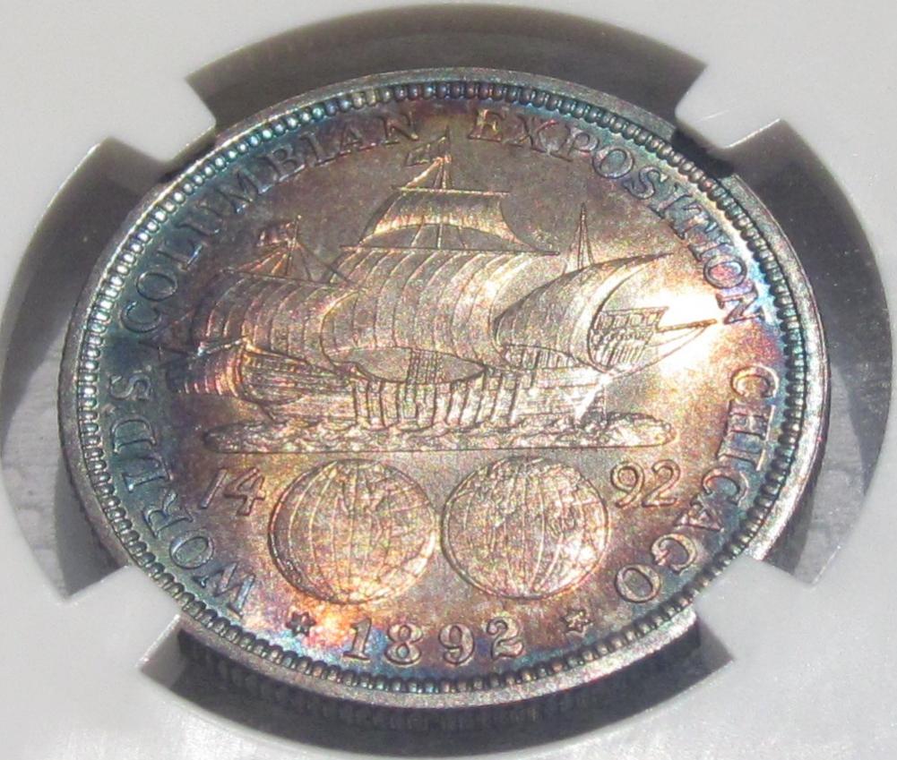 I really wasn't in the market for a commemorative, but while browsing them on GC, this one caught my eye. It's one of my favorite designs. It was minted in 1892, 100 years before my birthday. I love the reverse. The blue grey toning in the center reminds me of an old ship sailing in the stormy seas, and the rim is complemented with toning. The toning has also nicely filled in the boarders on the hemispheres. Not the best pic, I will most likely send it in for a trueview. I paid $20 under pcgs price guide.