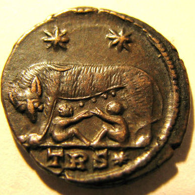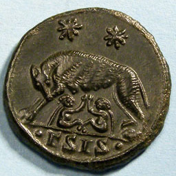 That's a nice coin - considerably bigger at 25mm. It continues to amaze me how engravers managed to put so much detail in pieces as small as an AE3. Talk about microsurgery. I'm also surprised you don't see a woodpecker in the R&R coins - wasn't he an integral part of the legend?