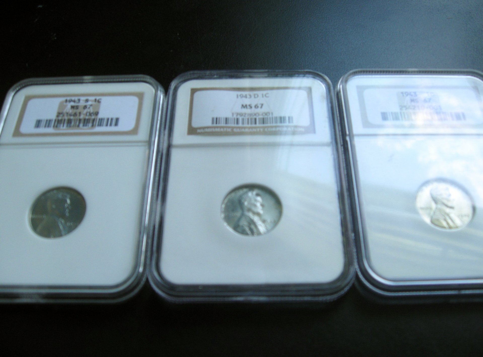 I pulled my top 40 box out of the safe today and was shocked to see that of my 3 MS67 steel cents (p,s,and d) in NCC holders, the D has become horribly corroded and the other 2 are fine. I live if Florida so the room temp is pretty constant as well as the humidity with the ac running most of the time. Do I have any recourse with NGC and can someone explain what happened? This happened in the last year, probably sooner.