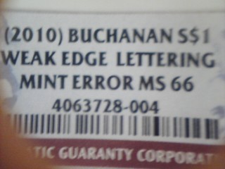 Over the past year Ive sent in quite a few Buchanan dollar coins with very weak edge errors. They were all from the same box and extremely weak. NGC acknowledged them as such. (whats the S$1) I had a few more I saved to send in when I had the money. Once I saved, I had to resubscribe to NGC in order to get them graded. 45 days later I recieve them back in slabs with no error grade!!! They were all the same weakness as the others 100%! I called NGC and was told they no longer grade weak edges and havent for a few years now. I said thats funny because 2 months ago you did...for me! The error grader had to call me back I was told. He told me that they made a mistake in grading my buchanan weak edges in the past. I said thats all fine and dandy but you screwed me pretty bad with the ones I just sent in. I have no use for ms64-ms66 graded non error presidential dollars. Now I have error coins slabbed by NGC with no error acknowledged..only weak grades. I was offered a partial refund..not a full one. I went up the chain and finally got a full refund from them. Should I crack the ones they graded and send them in to another company? I dont know what to think? I guess I cant be mad since , not only did I get the refund, but now the weak edged buchanans that they actually acknowledged as errors must be pretty darn rare! Im mad that I already sold a few! Not only are they the last to ever get the NGC weak edge error, but they stopped grading them as such over 2 years ago, and NGC acknowledged a mistake! What should I do?