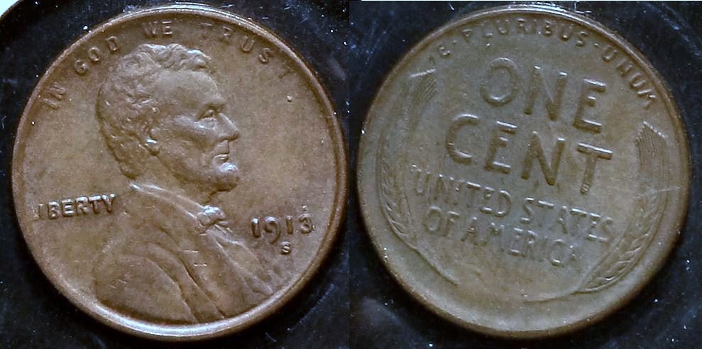 1910-S - 53 (good luck, I love it, but a NCS might not) 1912-S - EF-45 (40 on a tough day) 1913-S MS-61BN (slider). I love the look, it shows how original the surfaces are. It actually has a light coating of very early stage verdigris. That's what causes the whitish haze. That is an original uncleaned, original patina coin IMO. I will be very intested to see what they do with this one because I've seen many others like this (other years). 1918 - MS-64BN (might be the pic, but the color seems a hair off, rev rim ding keeps it from landing a 65?, it still might 65) 1995 DDO - AWESOME example! MS-67RD