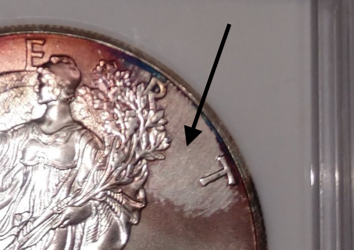 I opened the slab and pulled the coin out. I believe it is an American Silver Eagle, it passed magnet and weight test. The Toning looks faked. But I'm not an expert on Toning. Thanks for all the info.