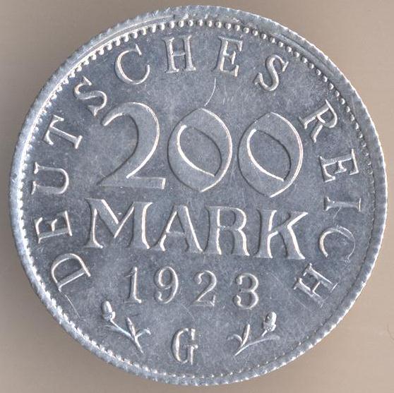 Did that summer ever come? Over here it's not cold but lousy these days. As for those two coins, they basically used Josef Wackerle's design of the 3 Mark coins (1922/23). And of course they became worthless due to the hyperinflation very fast: When the 200M coin was issued, it had a purchasing power of about 4 Pfennig in pre-inflation terms; a little later the 500M came out, "worth" about 6 Pf. When production ended in August 1923, that value had gone down to 0.00025 and 0.00063 Pfennig. Many of these were actually sold as scrap metal ... Christian