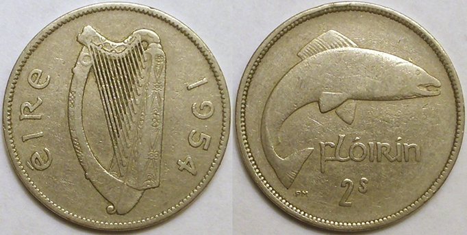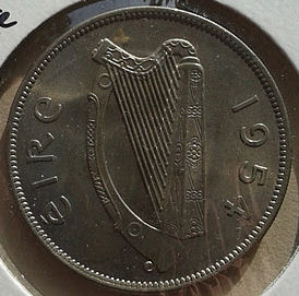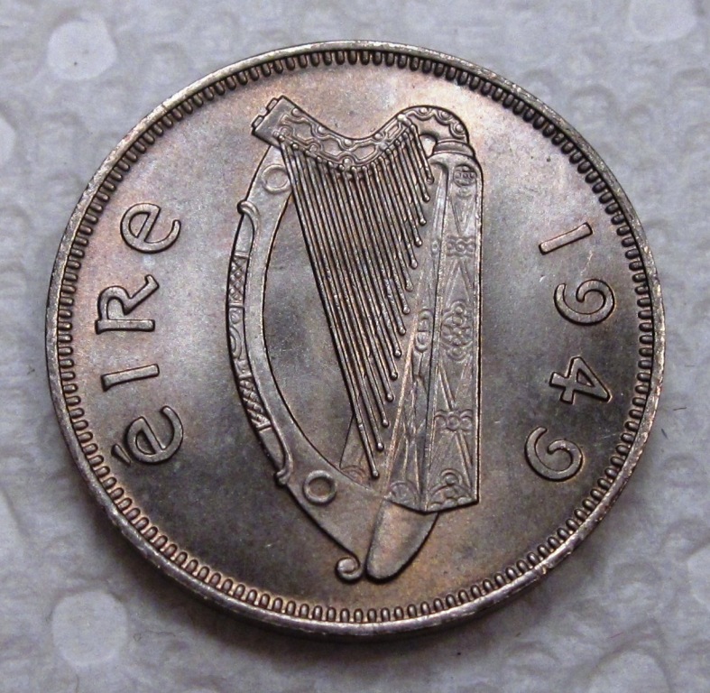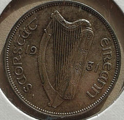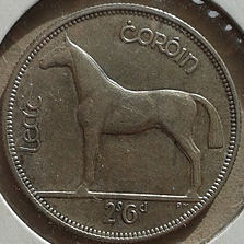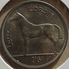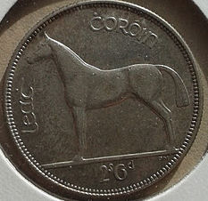 I married an Irish girl & she has stuck it out with me for the last 30 years. This weekend I picked-up these nice Irish coins. The first one is a Half Crown (2 Shillings + 6 pence) dated 1942. This coin has the Irish harp device on the obverse and the horse on the reverse.