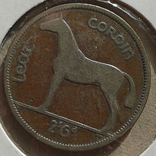 If you can get photos, please post your half crowns. It would also be nice if some folks could post examples the other Irish coins from this series: Farthing with woodcock Half Pence with Sow & piglets Three Pence with Rabbit Florin (2 Shillings) with Fish