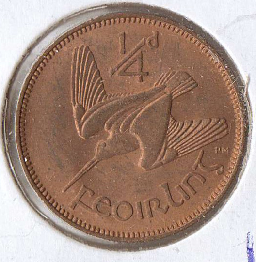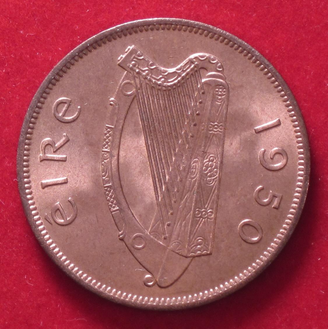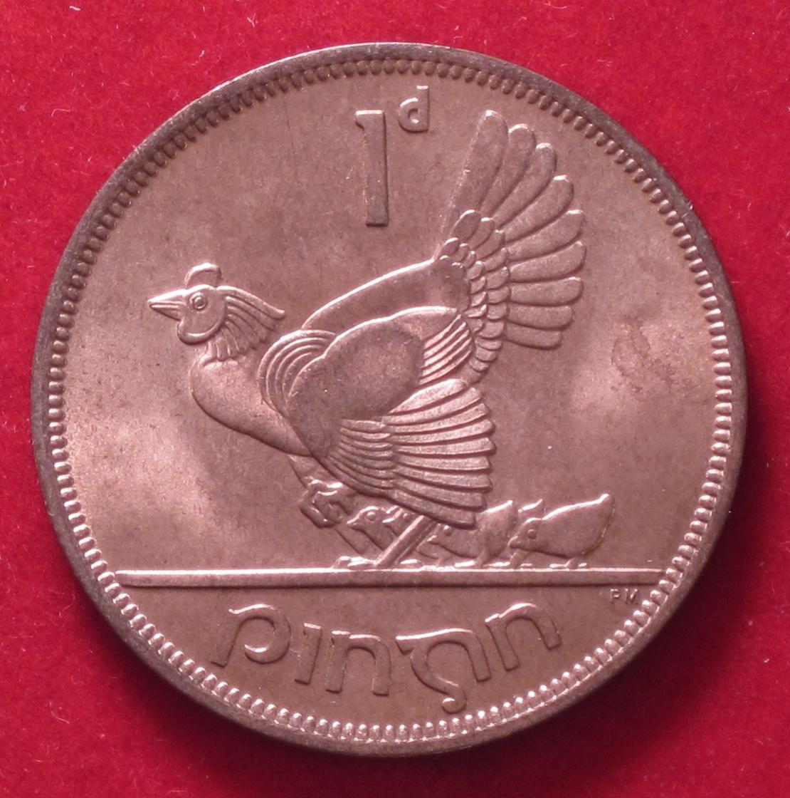 My final Irish coin today was actually purchased a couple weeks before from the same dealer. It is the 1 Pence dated 1950. This coin has the Irish harp obverse and hen with chicks on the reverse.