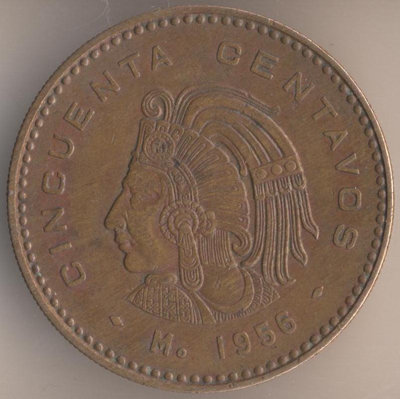 50 centavos 1950, silver .300, weight - 6,66 g., size - 26 mm, thickness - 1,7 mm, mintage - 13570000 pcs. Mexico City Mint. Such coins were released at 1950 & 1951.
