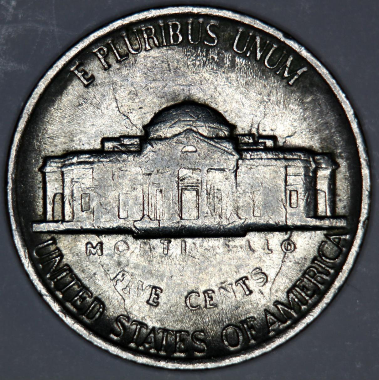 You have a highly unusal coin here and please don't let anyone tell you any different. I have a cent coin that shows a major die clash on Lincoln's face area. these folks on here have been trying to tell me it is impossible for this to happen. I know it can absolutely happen under certain circumstances because I have two more cent coins with it only not as major as my last find. I can clearly see Jefferson's nose and his part of his ponytail and lots of other clash marks on the very top of the side of the building. there is also some marks on the steps of the building . this should make your coin worth quite a bit more than a regular die clash coin. you may be able to see the clash marks better than we can by using a 10X loupe because a camera usually misses a lot.. If you can see the marks that are not supposed to be there please let me know what you can see.