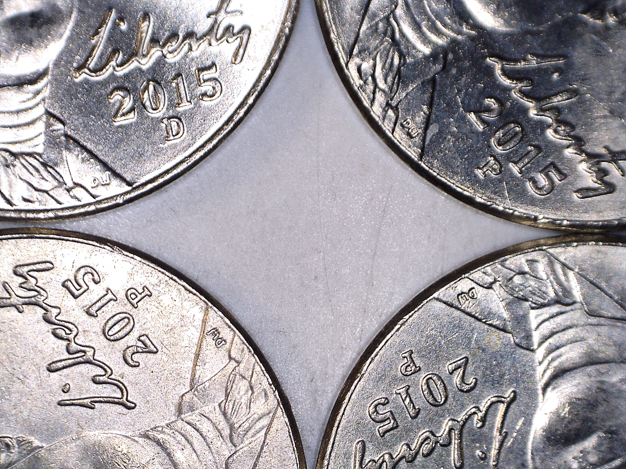 In the last nickel box I searched, these die chips were found. They are all 2015, however, 1 is a D and 3 are P's. The die chips are all in the exact same place. Each die chip is found on the reverse of the coin in the last "O" of Monticello. Is anyone else finding these die chips in their coin roll searches of nickels? Please let me know if this has been a common find for a 2015 D or 2015 P. Thank you for any information or help on this subject.