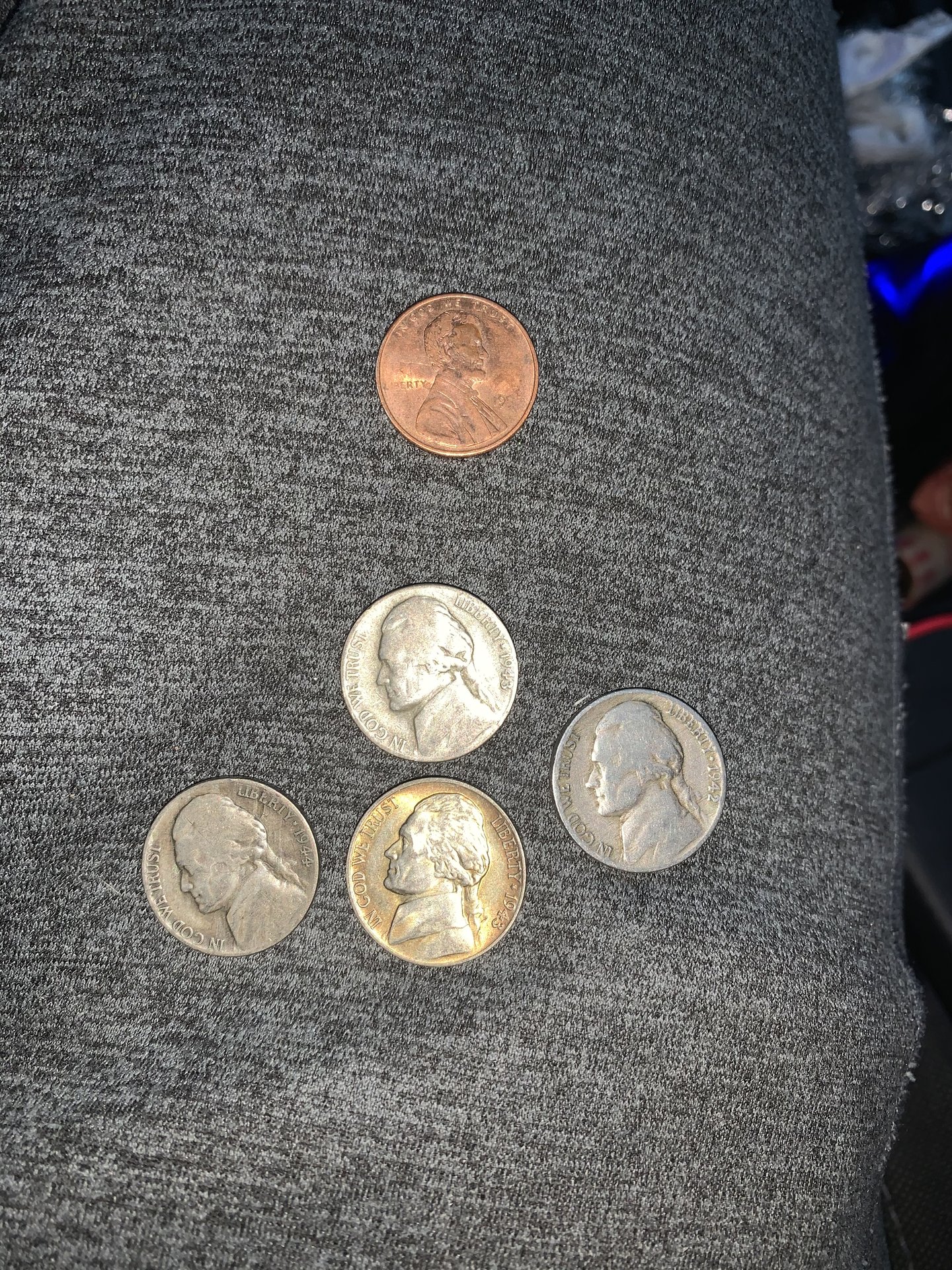 The cent looks to be grease-filled. Nothing special. That 43 War Nickel in the center looks quite nice though.